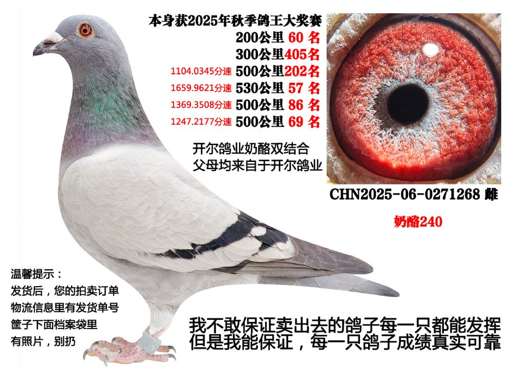 - 当前查看拍卖鸽:25年秋季4次500公里,4次前百名(奶