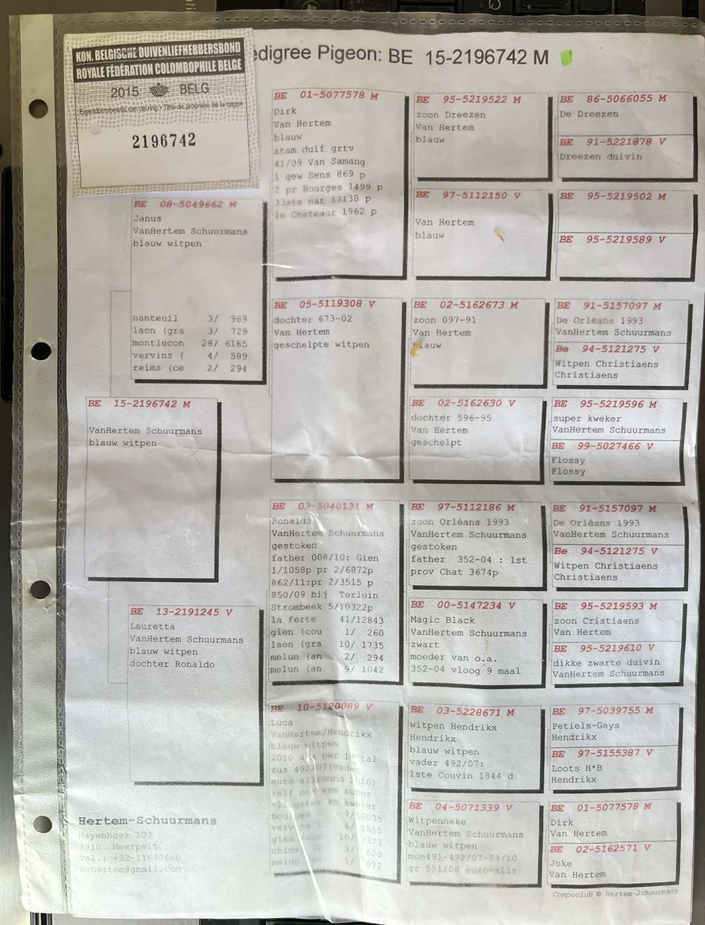 鸽主:范赫特姆-舒曼斯原舍