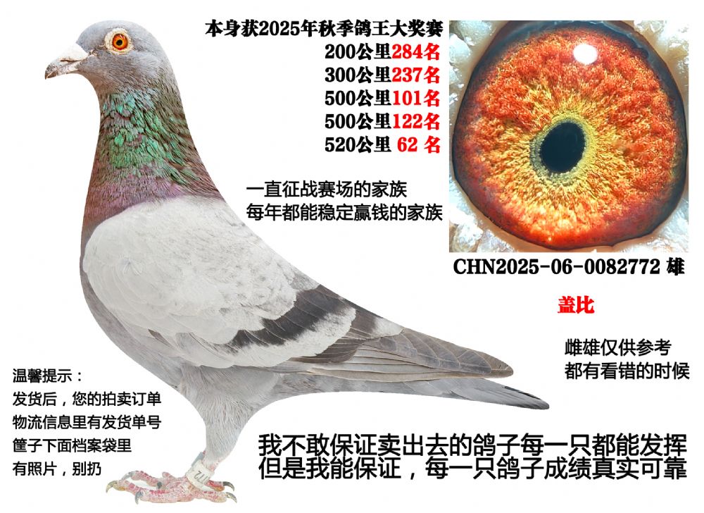 4、本期拍卖鸽有血统书的都已经上传,没有上传的代表没有血统书及足环证,介意勿拍,以免后续发生不必要麻烦。