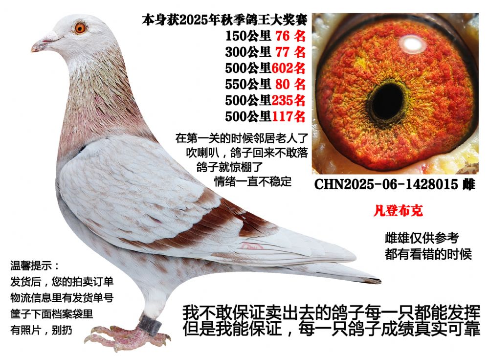 | 1657674 | 25年秋季成绩鸽,11名,20名,32名关关高位(凡登布克) | ¥300元 | 1次 |