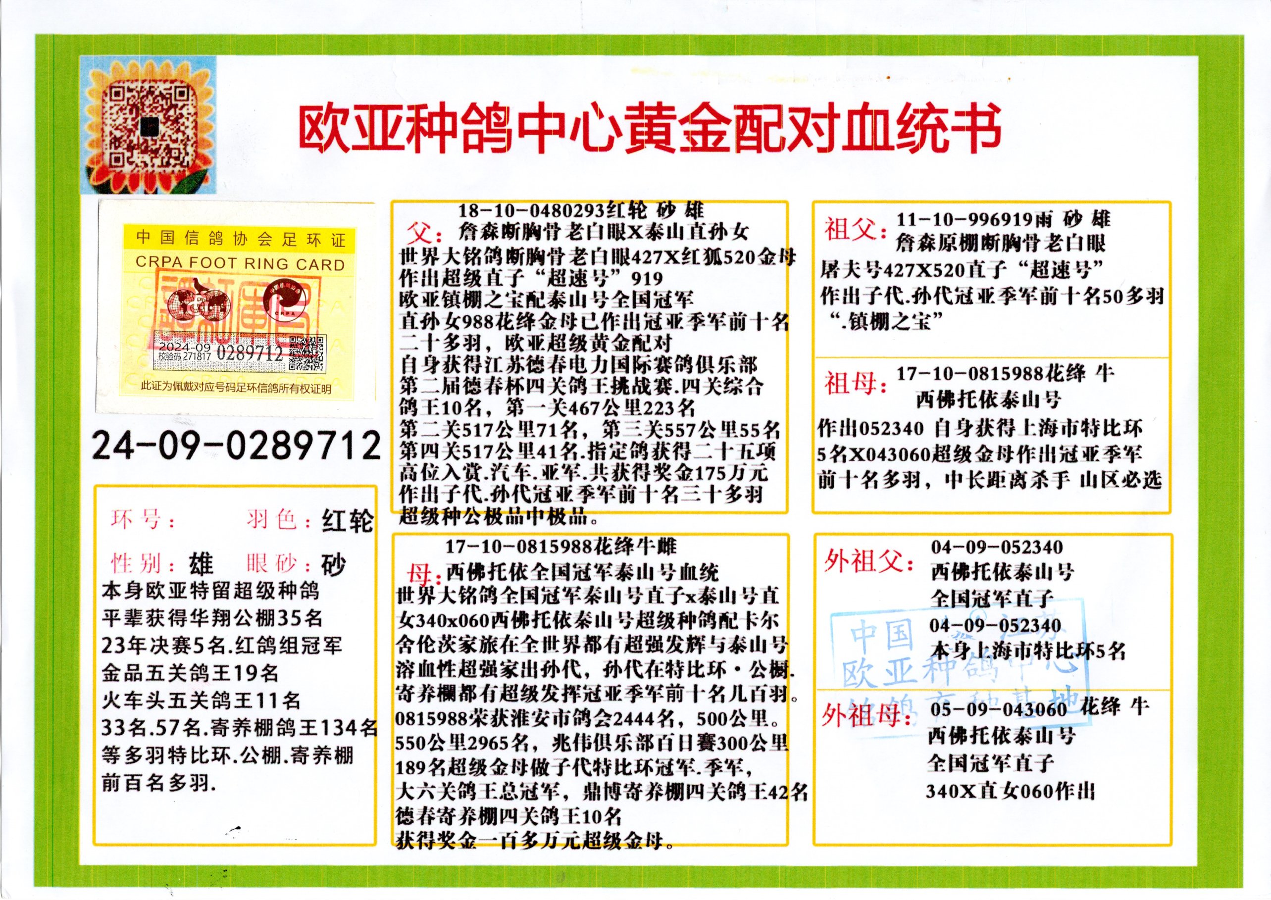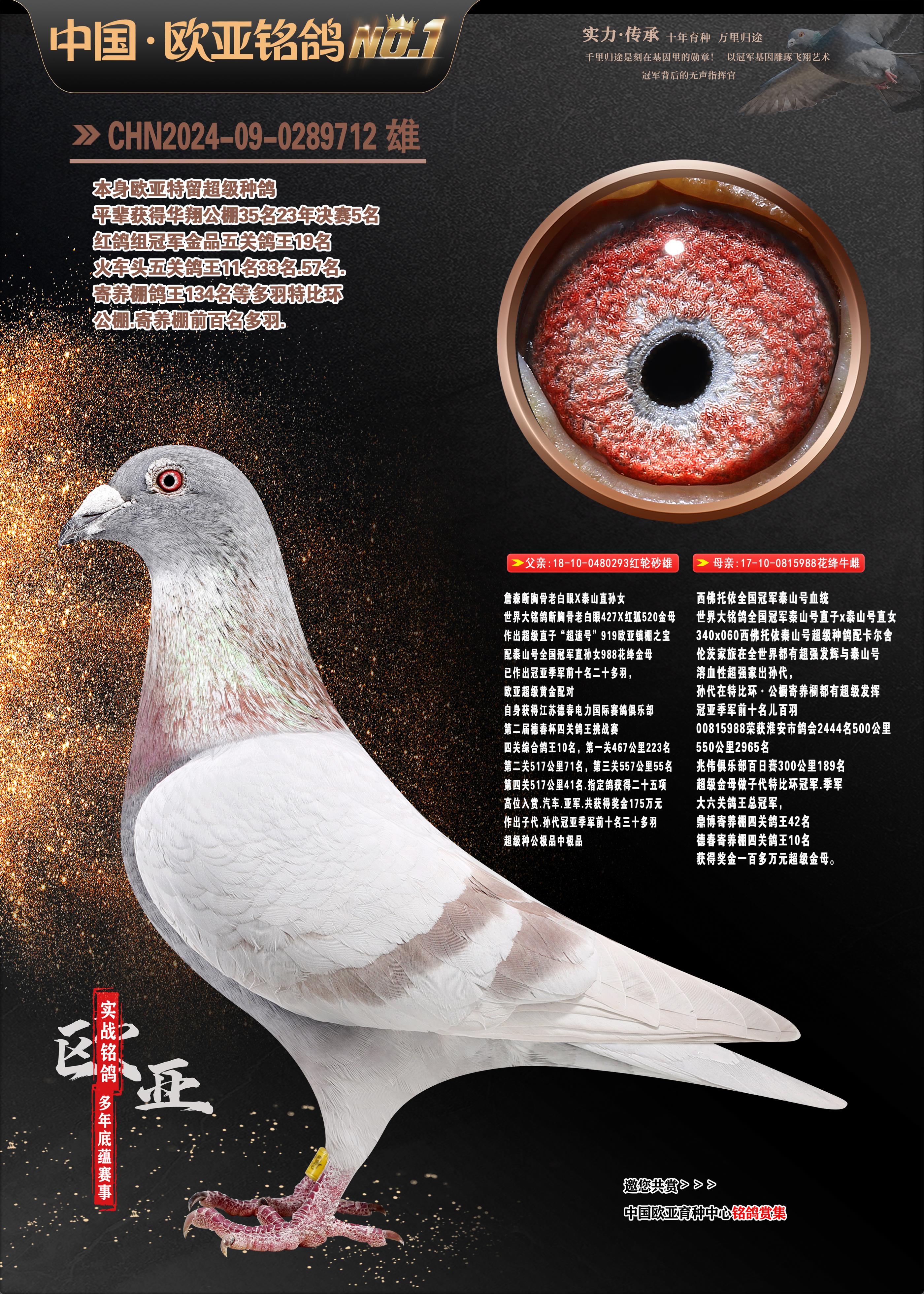 24年秋南京特比环欧亚荣获大团体冠军.小团体冠军551公里大特比13名.14名.16名.19名.20名.21名.24名.26名.27名.28名.42名.52名.54名.57名.65名.66名.68名.70名.71名.72名.74名.76名.80名.82名.83名.84名.85名.86名.90名.92名.110名.116名.121名.122名.128名.131名.158名.161名.164名.165名.166名.172名.174名.177名.182名.195名.196名.201名.205名.208名.210名.216名.253名.269名.275名.276名.294名.296名.299名,,24年秋云南天南铜都公棚决赛415名.天南铜都小棚决赛409名.云南玉活公棚决赛102名.490名.团体32名上笼二羽进二羽,天南铜都大棚506公里决赛445名。热烈祝贺河北省巨鹿县李兰生老师用欧亚泰山号血系连续十一年夺冠军,河北省国家赛冠军.全国季军等多次前十名高位,扬州王军王总用欧亚利奥24年春季获山东翔宇公棚决赛33名盖比53名。南京刘正龙刘总用欧亚盖比获得24年秋山东潍坊国际公棚决赛42名.精英赛30名.三关鸽王71名.决赛86名.加站赛16名.南京市特比环A组鸽王9名.B组鸽王5名.6名.C组鸽王5名.精英赛冠军4名.技能赛A组冠军4名.5名.秦淮区特比环荣获15名.46名.48名.87名。四川西昌徐亮徐总用欧亚利奥获得凉山州聚友决赛177名.第二关亚军双关鸽王19名.三关鸽王105名.云南豪庭公棚决赛603名。热烈祝贺24年四川重庆翔园鸽舍用欧亚泰山号荣获春季400公里冠军.秋季500公里冠军,河北王总用詹森X利奥获得千羽千翔公棚400公里冠军,广东蔡楷焕荣获24年秋爱好者 赛鸽俱乐部三关鸽王季军.一关420公里99名.二关450公里11名.三关520公里32名.单关季军.7名.12名,江西李卫兴荣获贵州红枫公棚8名.共翔俱乐部寄养棚四关综合鸽王30名.一关400公里78名.二关500公里55名.三关520公里37名.四关500公里57名.同父母获公棚18名.雷鸣获得武汉黄浦育翔中心冠军,四川陈文获得四川明鸿俱乐部300公里梦幻2名.3名.4名.9名.10名.13名.14名.15名.31名.34名.40名.41名.42名.43名.69名.71名.72名.73名.74名.94名.95名.97名.98名.99名.419公里决赛荣获总冠军7名.总共归巢9羽,四川徐亮获豪庭决赛603名,山西郑勇获得山西泰鑫公棚决赛255名詹森红狐,热烈祝贺马总获得开尔(飞跃队)决赛9名获奖金1310000万元.第一关52名,天津津福资赛180公里96名.获奖金429543万元,欧亚支持全国鸽友24年秋多人报喜 祝大家取得更好成绩,给欧亚报喜鸽友欧亚决定给每人赠送一羽超级种鸽。欧亚俱乐部特比环多关鸽王成绩:15年秋淮安特比环黑色星期一全会上笼9700多羽,当天无鸽归巢,第二天全会归巢357羽,本舍归巢158羽.前十名八羽.前一百名归巢57羽,16年春季获五关鸽王总冠军,总亚军四名.六名.七名.九名.十名.晶艺俱乐部520公里冠亚季军5名.6名.7名.9名.11名等,火车头冠军.季军6名.8名.9名.10名,16年秋晶艺俱乐部特比环520公里亚军.季军4名.6名.7名.9名,15年春南京白下特比环冠军.亚军.季军6名.7名.8名.9名.10名.指定鸽A B组获得冠军.亚军.季军4名.5名.,17年淮安特比环亚军.4名.5名.7名.8名.10名.六关鸽王总冠军.4名.6名.9名.10名,寄养棚宿迁刘总20羽特比环获冠军.季军.4名.7名.8名.9名等。18年荣获万羽特比环六关鸽王总冠军.总亚军.总季军.6名.8名.十名.单关四羽冠军.二羽亚军.四羽季军.前十名27羽。19年秋万羽特比环六关鸽王总亚军.总季军.5名.8名等,单关二羽冠军.三羽亚军.一羽季军前十名31羽。20年秋淮安市鸽会四关特比环大赛风雨无阻鸽王亚军.鸽王六名,金品俱乐部万羽特比环六关鸽王总冠军,总亚军.四名.五名.六名.七名.八名.十名.前二百名鸽王35羽,单关冠亚季军前十名四十多羽,火车头五关鸽王季军.六名.八名.前二百名鸽王十七羽。20年春荣获淮安五区一市四关鸽王总冠军.亚军.四名.八名.九名。21年秋荣获金品万羽特比环大赛六关鸽王总亚军.总季军.四名.七名.九名.十名.单关冠亚军季军前十名三十多羽。火车头协会鸽王六名.七名.十名.单关前十名十七羽。22年秋荣获鸽王总冠军.总亚军.5名.7名.8名.9名.11名.单关冠亚季军前十名三十多羽,第一关单关前二百名四十多羽,第二关前二百名三十多羽,第三关前二百名四十多羽,第四关前二百名四十多羽,第五关前一百名53羽。23年秋荣获鸽王季军.五名.八名.十名.13名.17名.20名.27名等多羽鸽王.单关前十名二十多羽。公棚.寄养棚部分成绩:16年秋宁夏黄河公棚总冠军电脑戈马力指定通炮冠军,17年送八羽参赛获得鸽王八名进奖四名,支持韩总荣获八名。支持鸽友荣获宁夏中卫公棚决赛总冠军.精英赛冠军,支持18年宁夏黄河公棚决赛冠军詹森X泰山。安徽鼎博寄养棚院内外四关鸽王总冠军.鸽王十七名.三十七名同窝,鸽王39名.42名.58名.67名。18年山东公棚预赛冠军.决赛65名.送八羽进奖五羽.指定获奔驰汽车一辆。支持鸽友获得云南蓝云公棚冠军.盖比X佛卡门。支持鸽友荣获云南银集公棚决赛冠军 詹森427X520血系 速度赛6700羽冠军。17年荣获金马俱乐部寄养棚四关鸽王总冠军.季军.六名.八名.第一关冠军.亚军.季军四名.七名.十一名.金牌教练奖。支持鸽友18年北京费翔公棚预赛九名电脑X桑杰士,支持鸽友荣获陕西威力公棚决赛11名.内蒙古临河寄养棚四关鸽王六名.詹森配泰山,支持河北王总用欧亚詹森427配胡本喜获20年秋开尔青年棚季军。云南东荣公棚16年预赛冠军.决赛77名.17年决赛12名.詹森红狐X泰山,17年平安公棚决赛4名 詹森427。欧亚获得21年金母寄养棚第一关四名.第二关5名.第三关5名.6名.7名.10名.三关鸽王总冠军,四关鸽王14名.十羽鸽王。支持河
