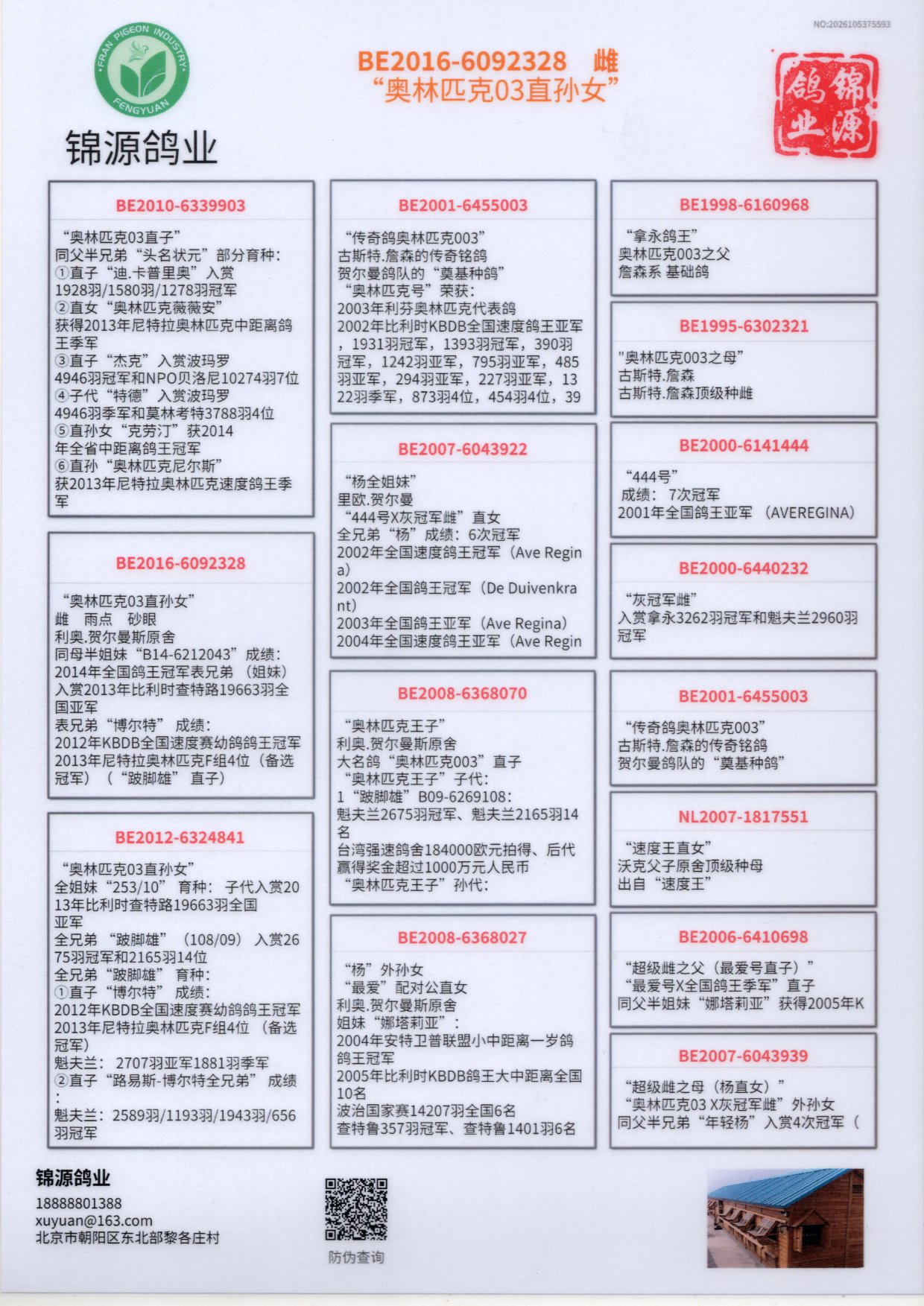 - 当前查看拍卖鸽:利奥原舍“奥林匹克003直孙女”