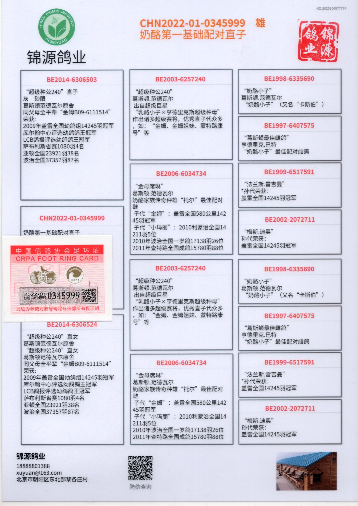 | 1657850 | 本场拍卖鸽703X756直子23-0035587雄 | ¥100元 | 1次 |