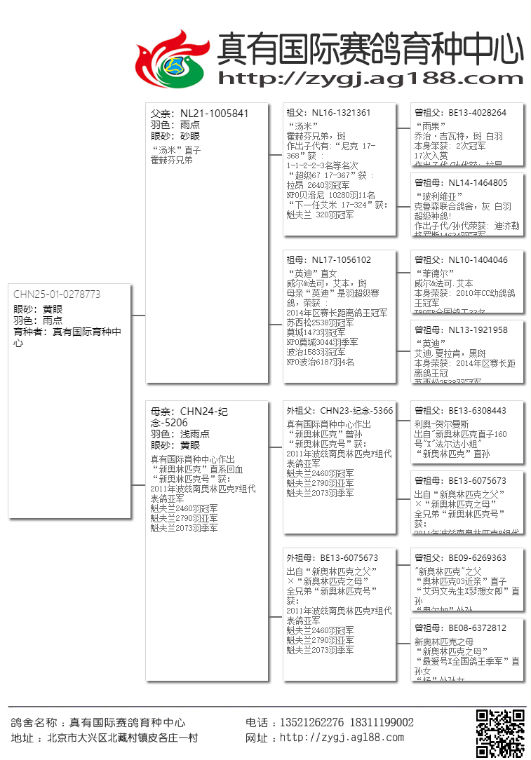 【在这三座金矿还未被世人发现之前,真有国际就第一时间把高品质的鸽子带到了国内,取得了空前的发挥。近几年大家才逐渐认识这几位大师鸽子的魅力。请记住!当任何商业鸽舍进入炒作后期的时候,他的鸽子质量与价值都会急剧下降,即便是詹森兄弟也难免于此。所以引进这家鸽舍最巅峰时期的鸽子,得以延续,才是真有国际成功的致胜法宝。】