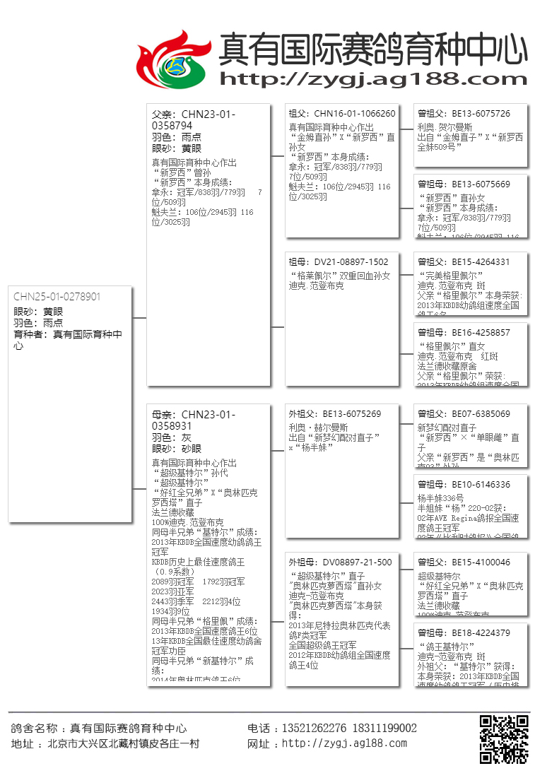 【在这三座金矿还未被世人发现之前,真有国际就第一时间把高品质的鸽子带到了国内,取得了空前的发挥。近几年大家才逐渐认识这几位大师鸽子的魅力。请记住!当任何商业鸽舍进入炒作后期的时候,他的鸽子质量与价值都会急剧下降,即便是詹森兄弟也难免于此。所以引进这家鸽舍最巅峰时期的鸽子,得以延续,才是真有国际成功的致胜法宝。】