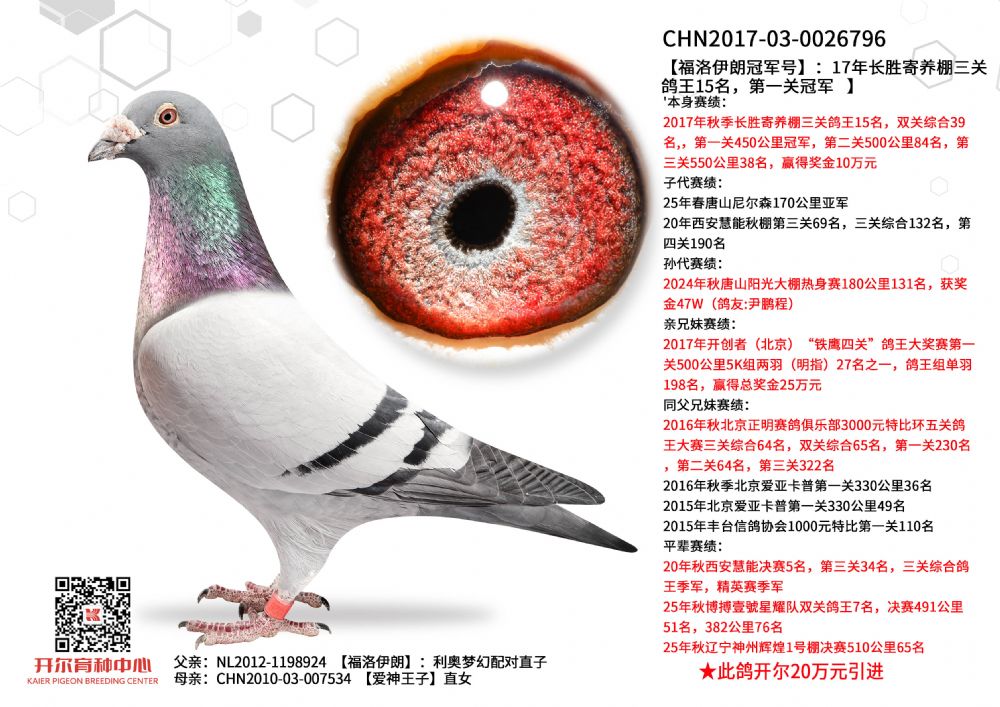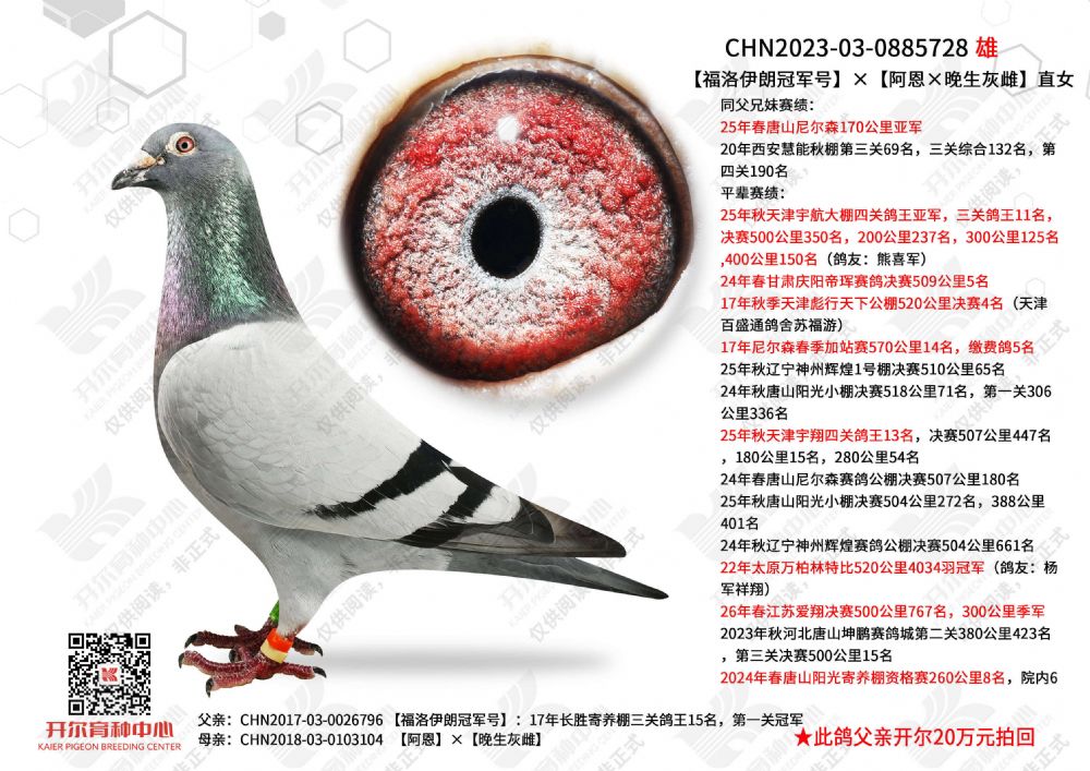 - 当前查看拍卖鸽:福洛伊朗冠军号ד阿恩×晚生灰雌”直女