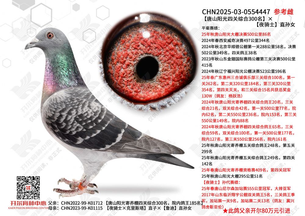 - 当前查看拍卖鸽:唐山阳光四关综合300名×夜骑士直孙女
