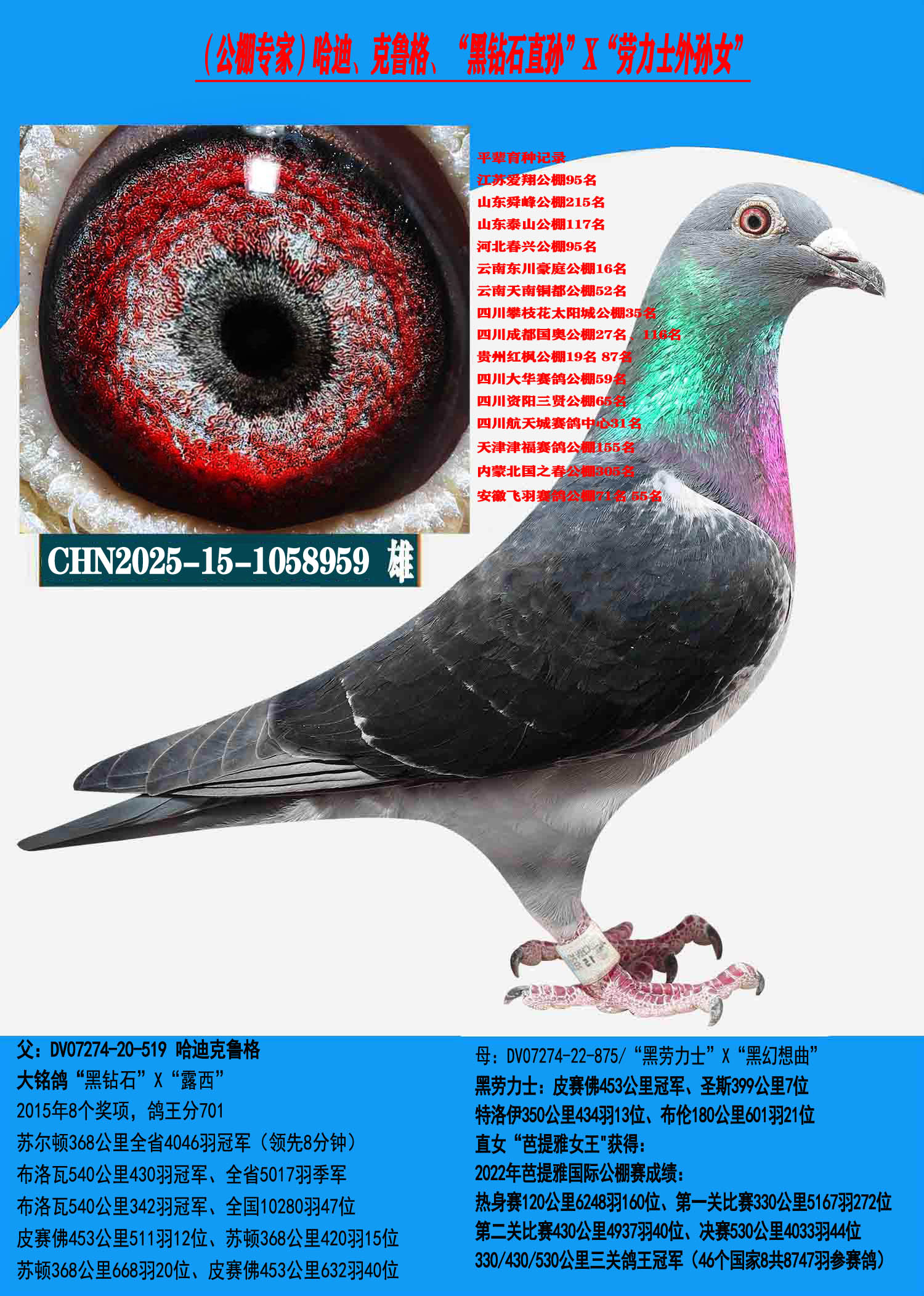 1658254 (重点推荐 公棚稳定性利器)鲁迪狄萨尔“金手指”近亲种鸽 ¥1000元 0次