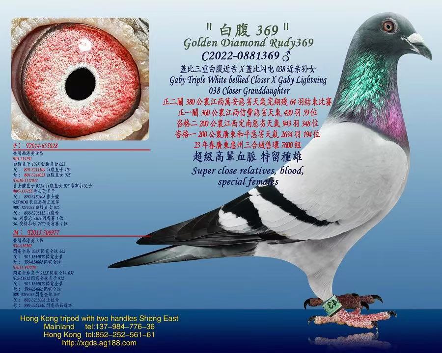 廣東順德鴿友馮有堅先生使翔蓋比白腹號鴿系在奪國家賽順德佛山廣州三區總亞軍