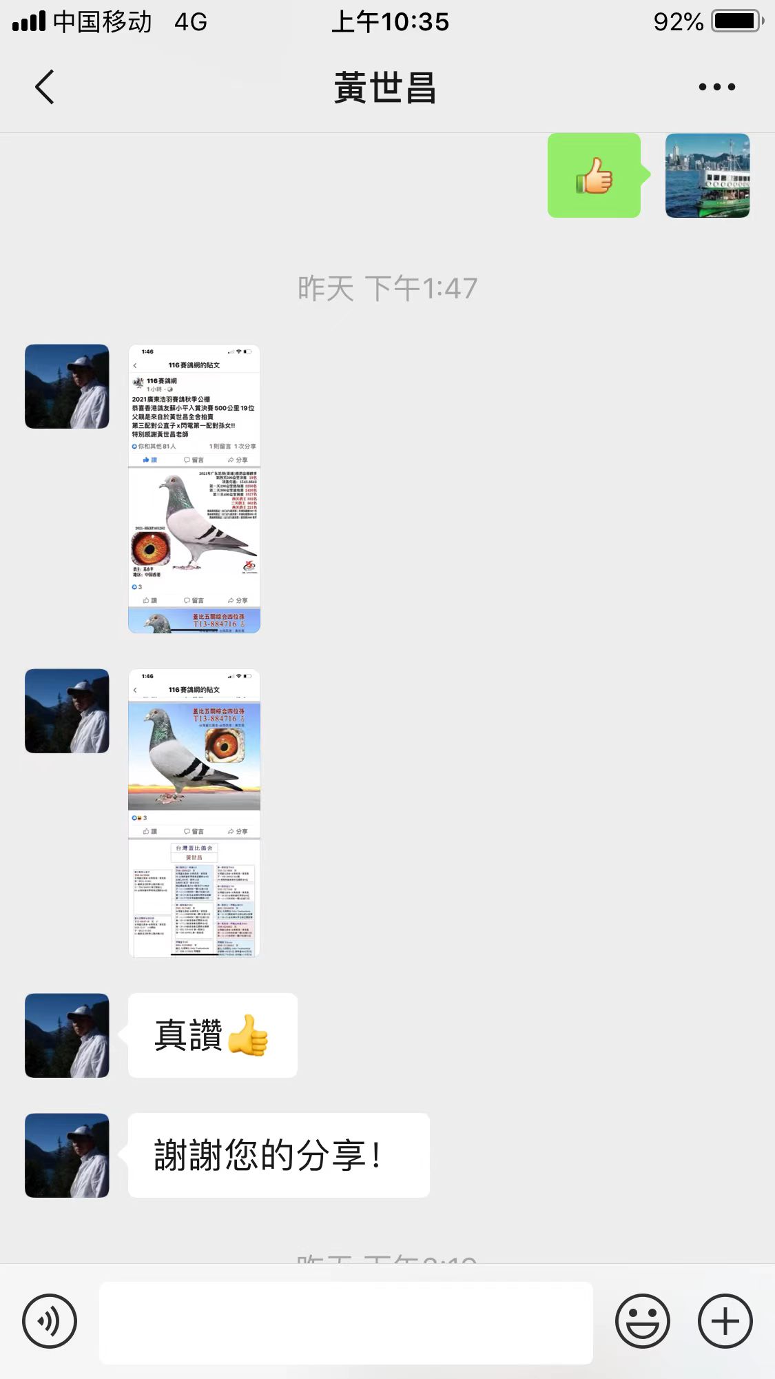 廣東順德鴿友馮有堅先生使翔蓋比白腹號x閃電號鴿系勇奪順德鴿協527公裏吉安站6位