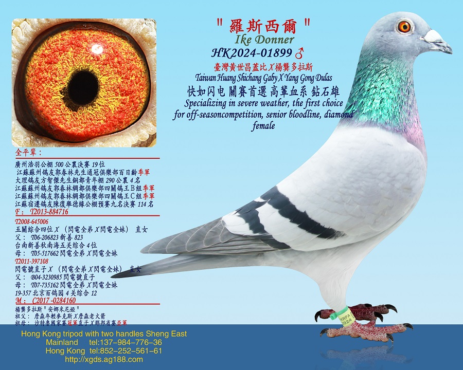 廣東順德鴿友馮有堅先生使翔蓋比白腹號鴿系在奪國家賽順德佛山廣州三區總亞軍