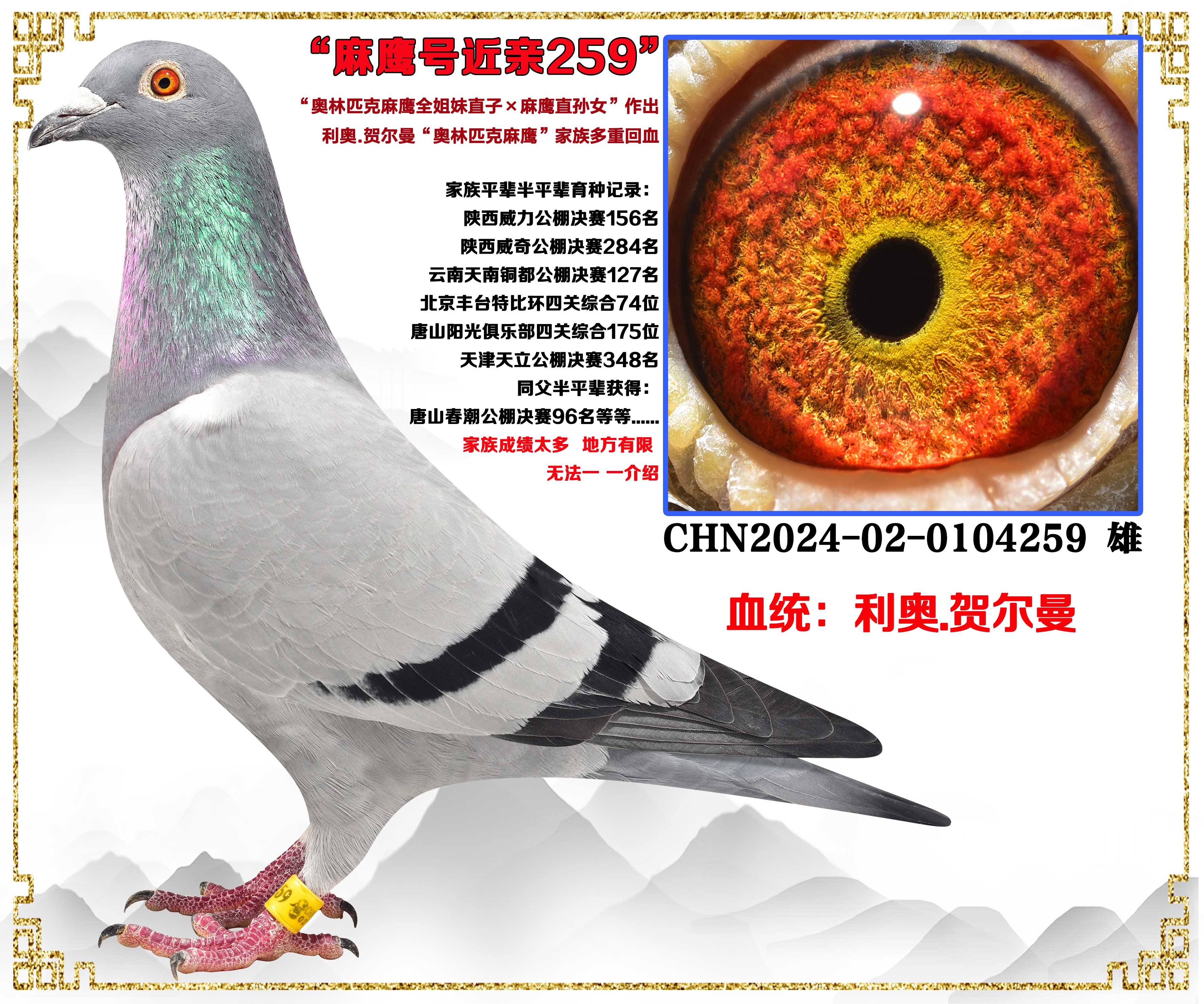 - 当前查看拍卖鸽:利奥“奥林匹克麻鹰全姐妹直子X麻鹰直孙女