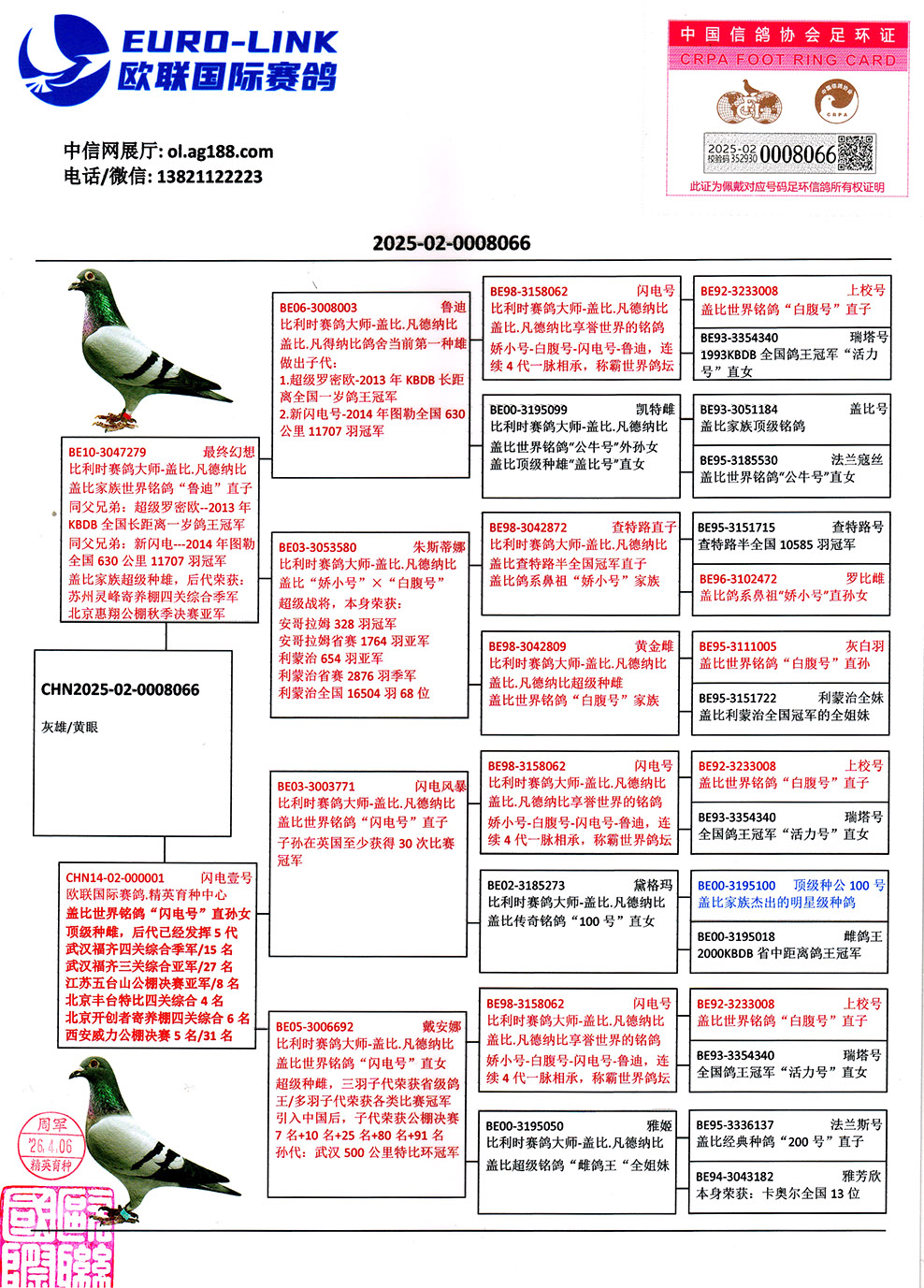 - 当前查看拍卖鸽:盖比世界铭鸽“鲁迪”近亲直孙
