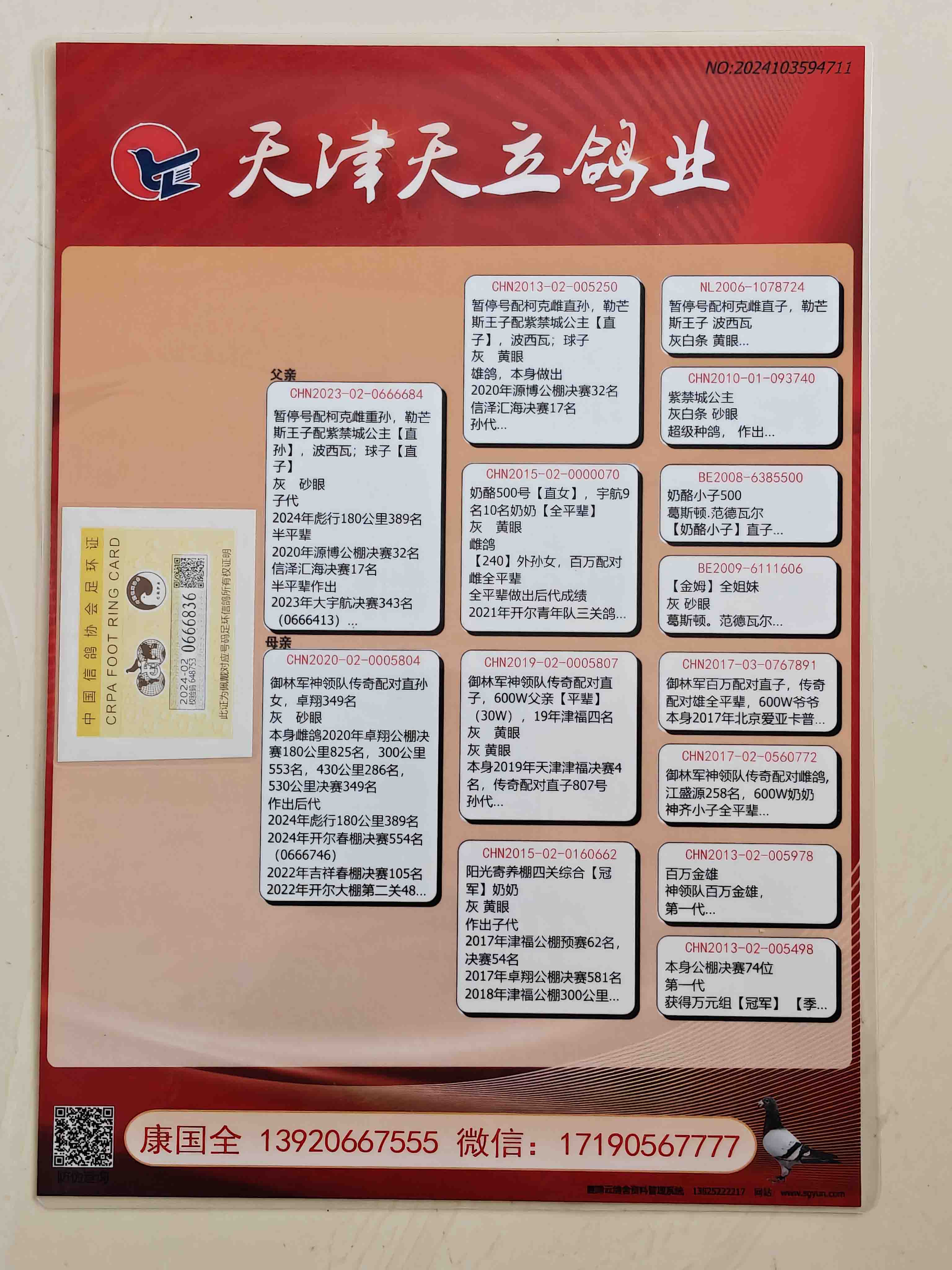1659032 御林军神领队-天津天立鸽业康总作育 ¥1000元 1次