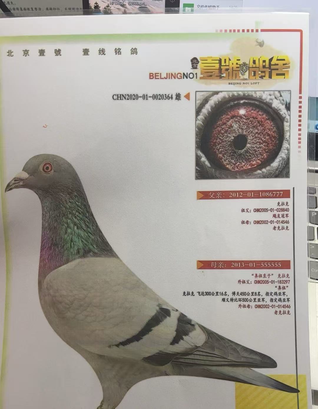 此鸽当年8万元购买、所以起名8万号