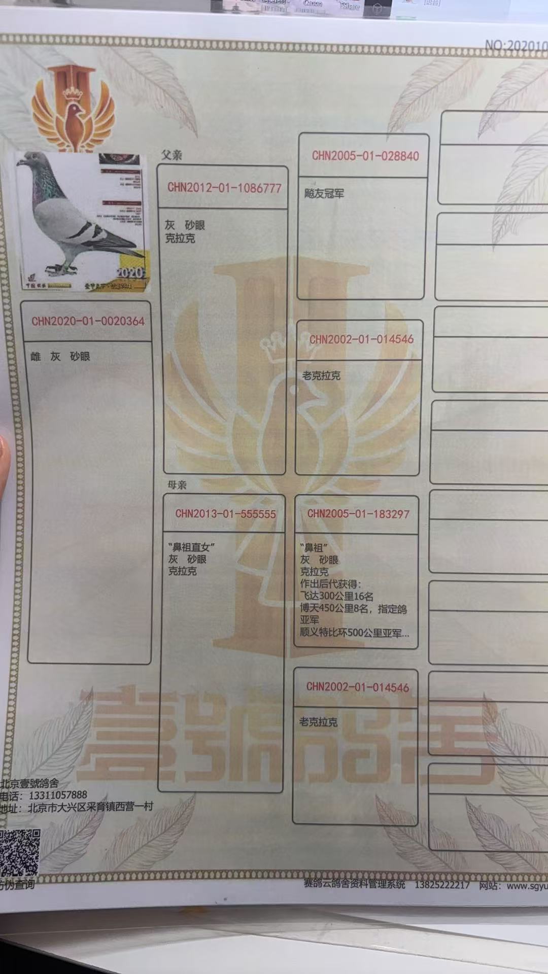- 当前查看拍卖鸽:8万号、壹号克拉克鼻祖外孙女