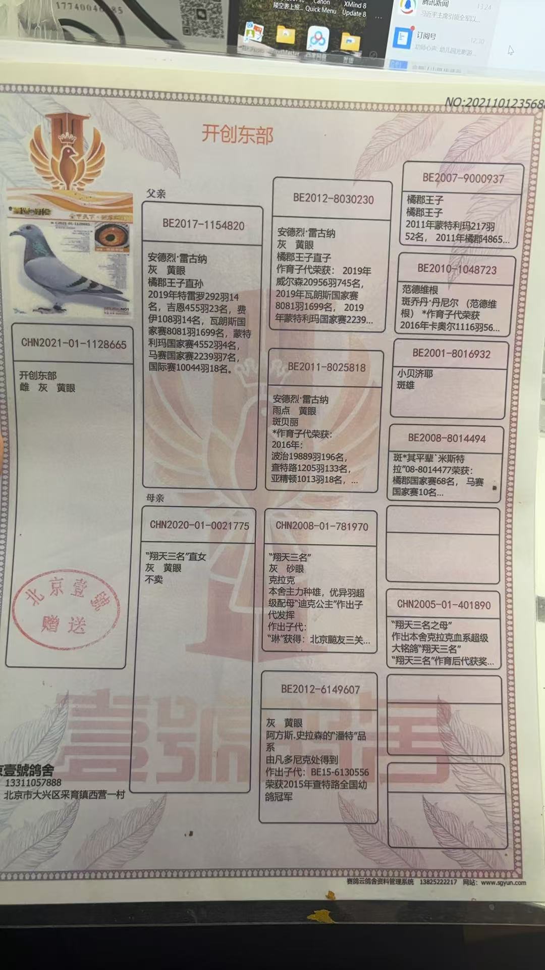 - 当前查看拍卖鸽:北京壹号、翔天3名外孙女