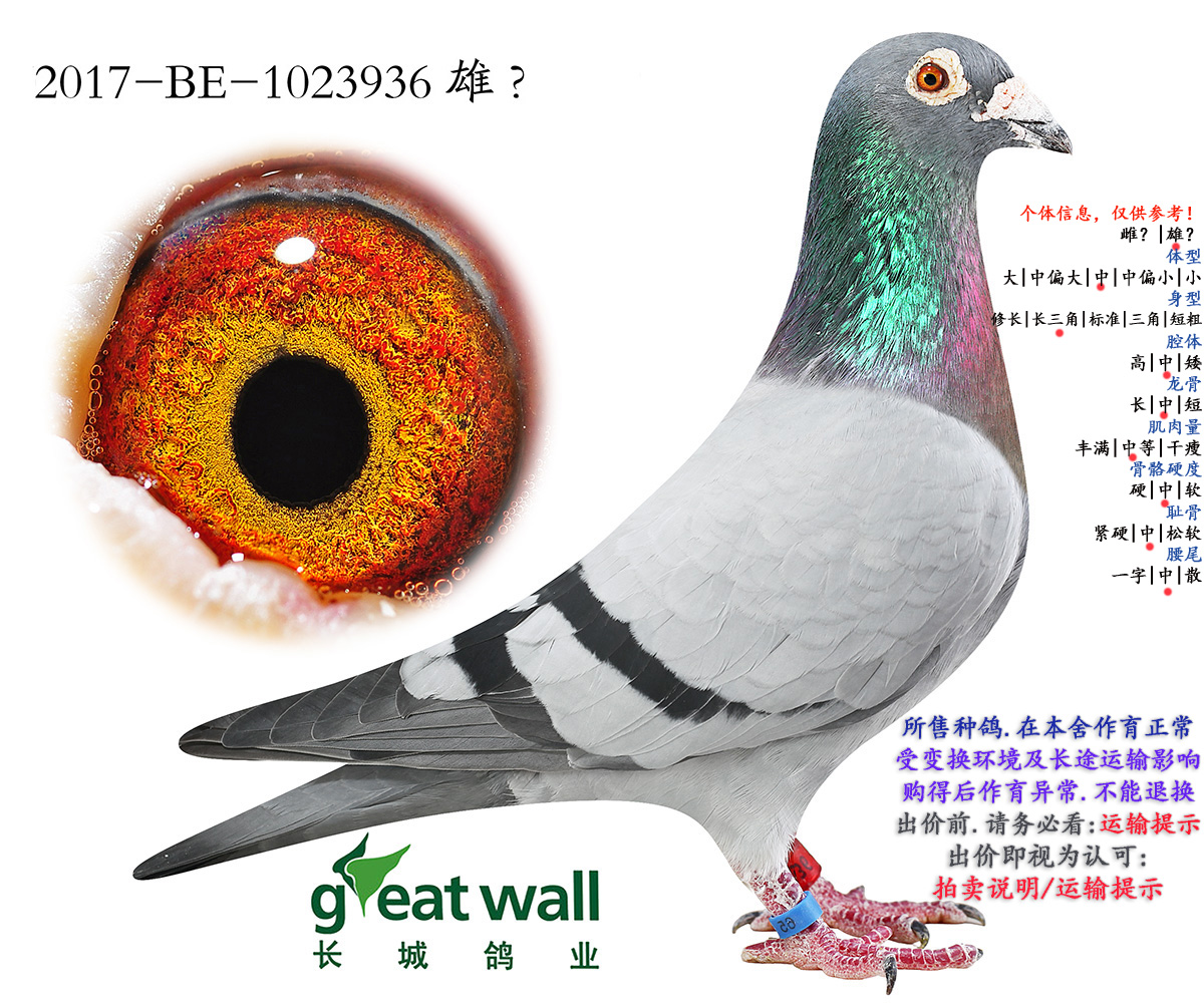 因拍卖鸽均是未做育过的种鸽或幼鸽,图内所标雌雄仅供参考,实际性别已实物为准。不做退换理由。