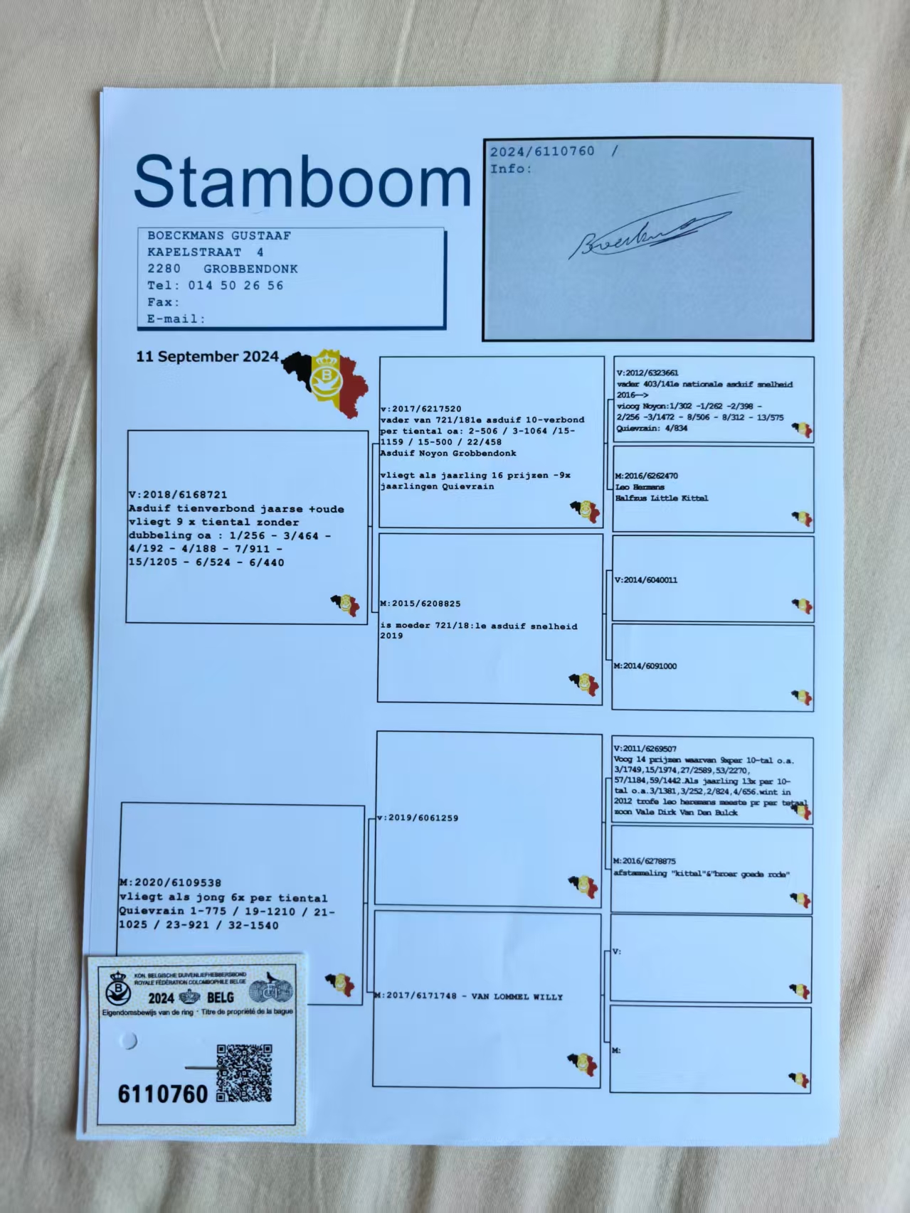所有拍卖种鸽作育一切正常,因换环境不保作育~!