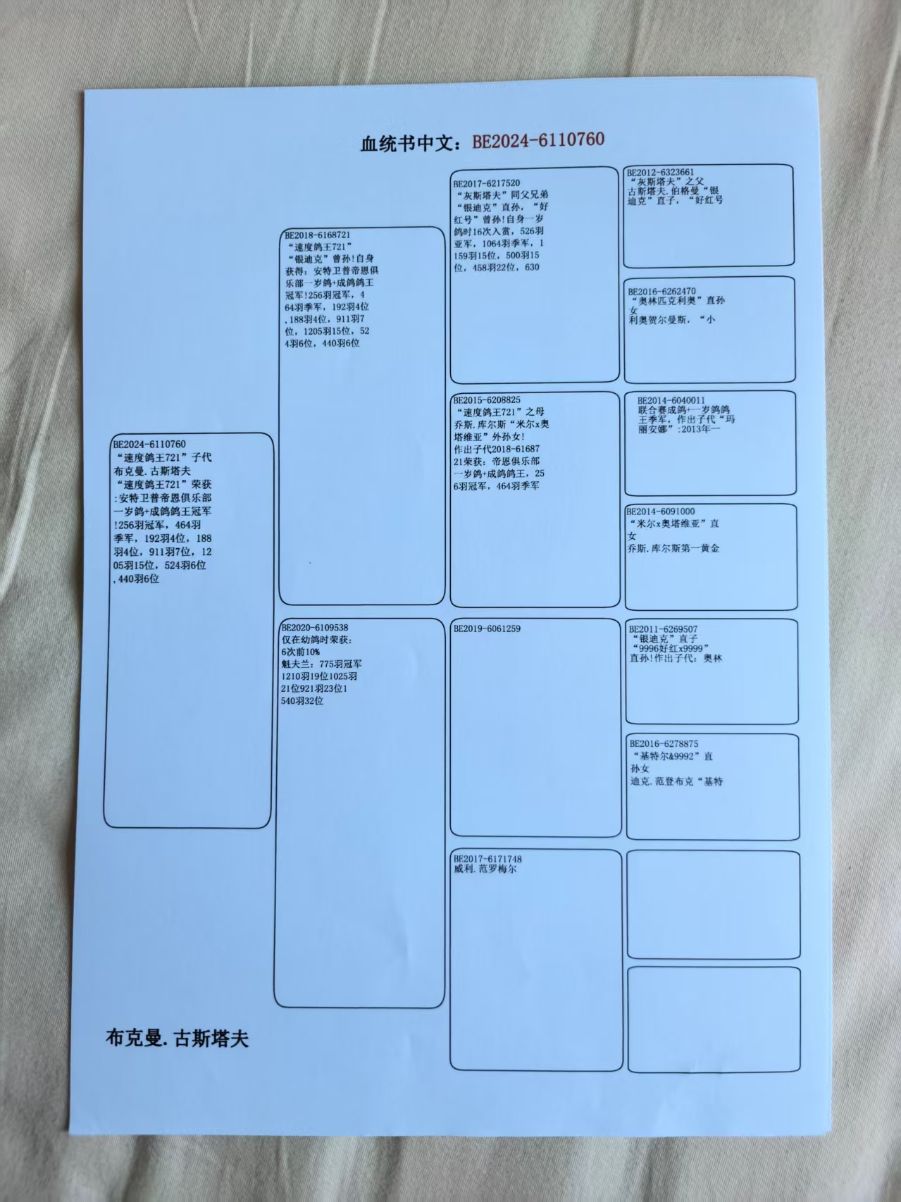 - 当前查看拍卖鸽:速度鸽王721直子760