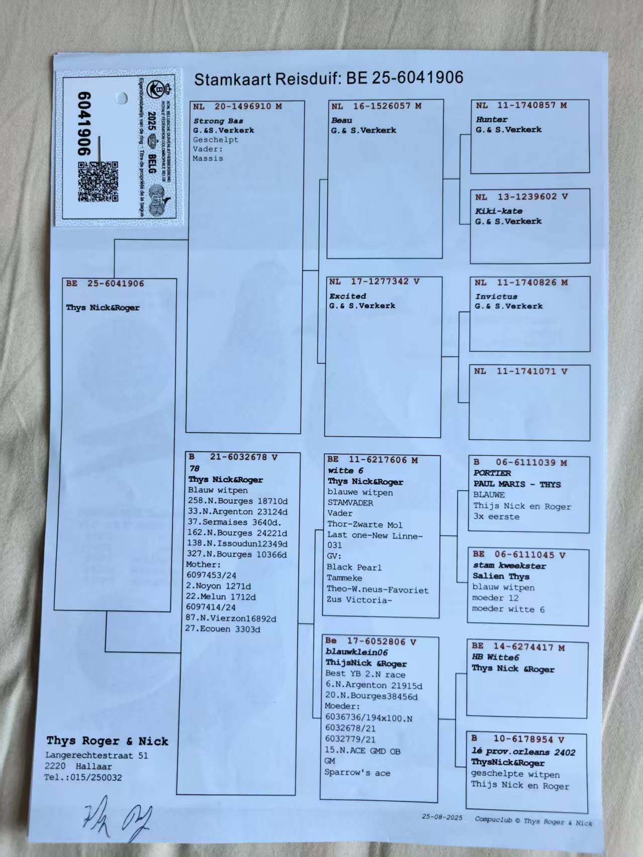 - 当前查看拍卖鸽:尼克 罗杰 泰斯白羽606孙代906