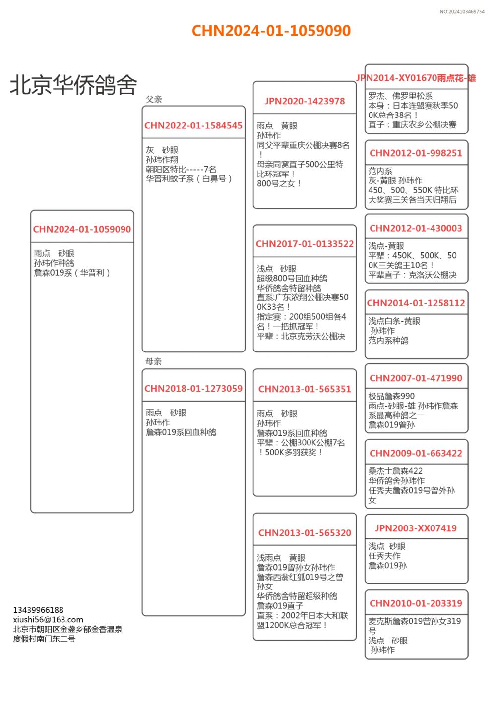 - 血统:华普利蚊子系×詹森系