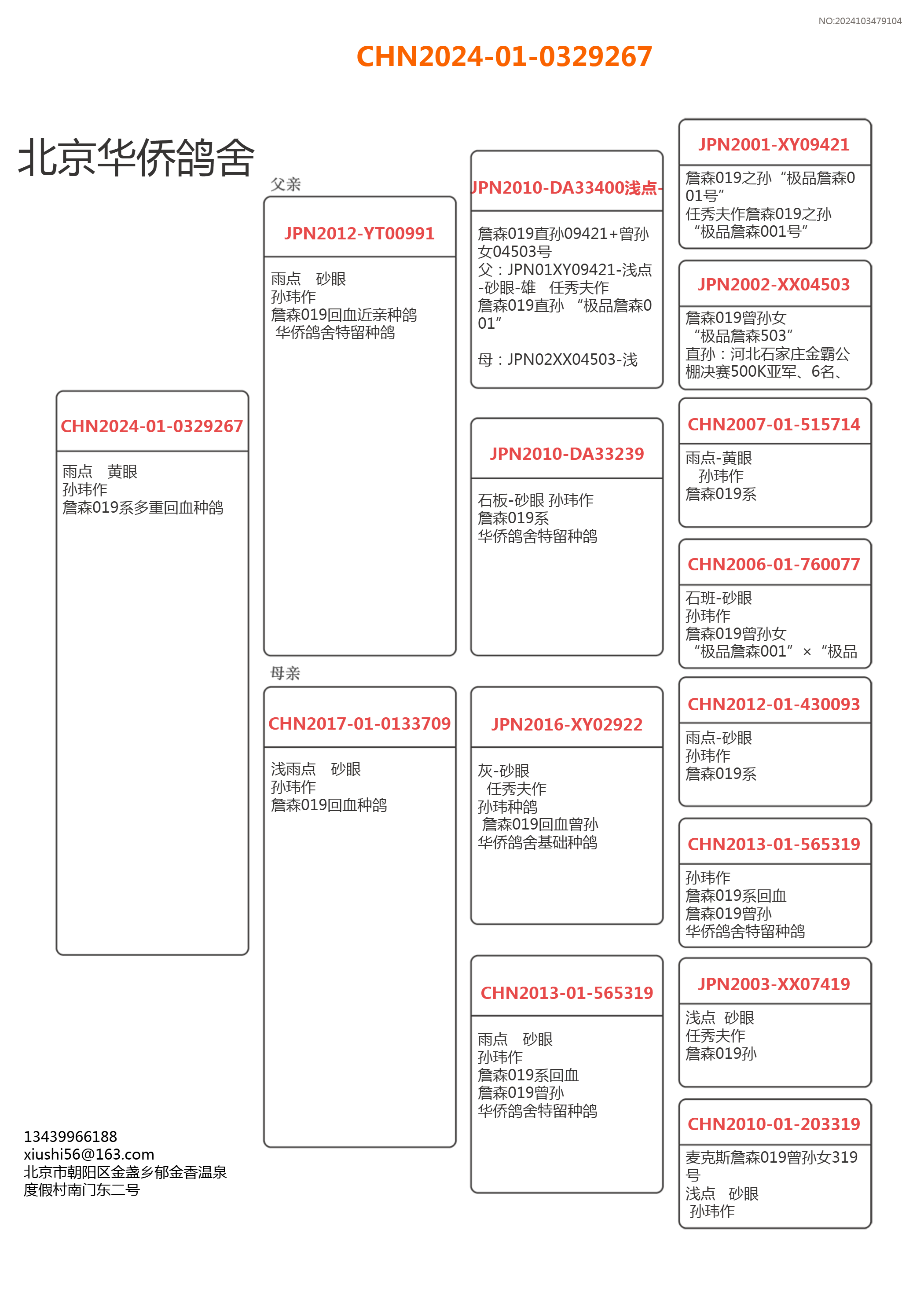 - 当前查看拍卖鸽:9号--詹森019系-0329267雌