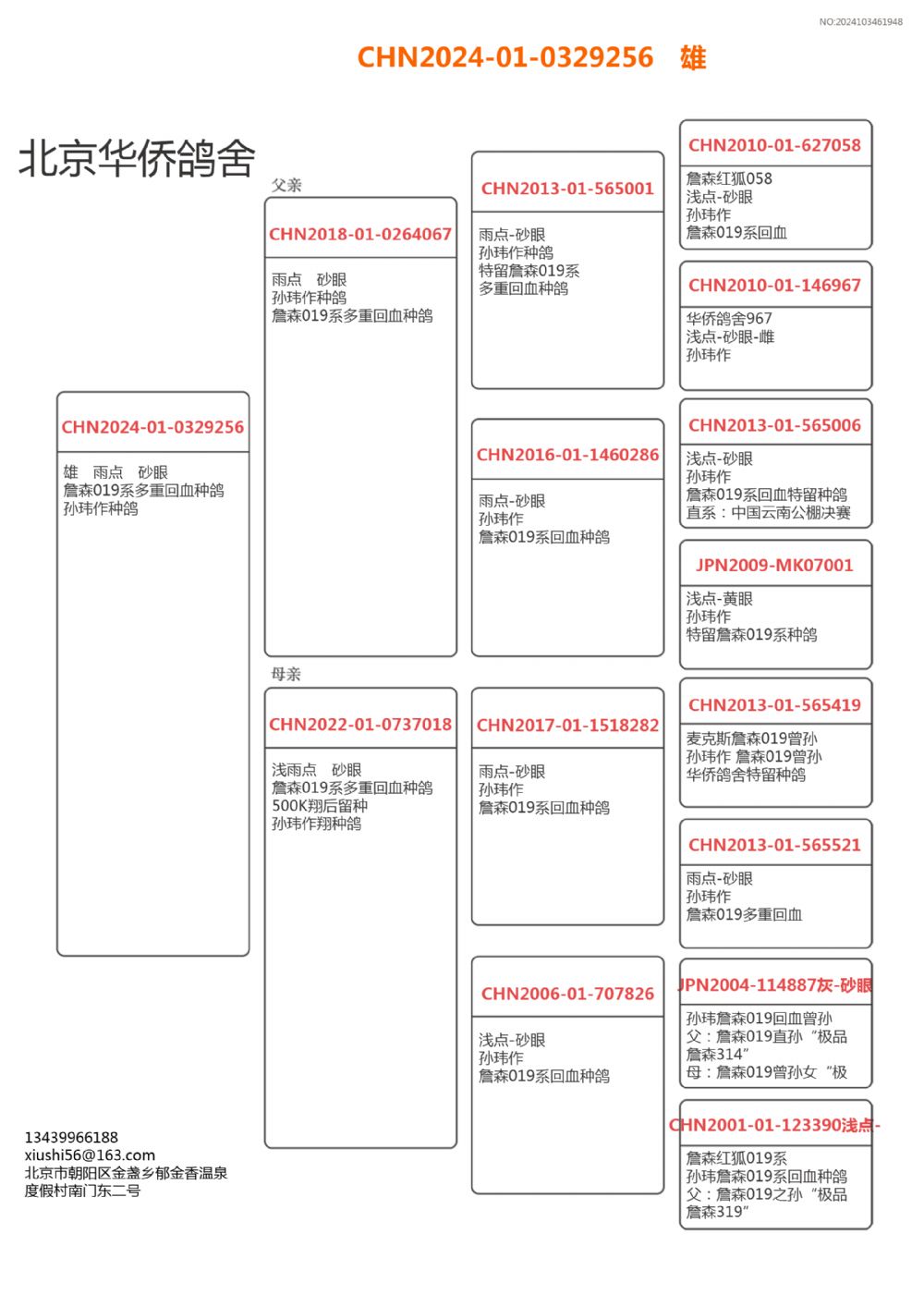 - 当前查看拍卖鸽:1号--詹森019系-0329256雄