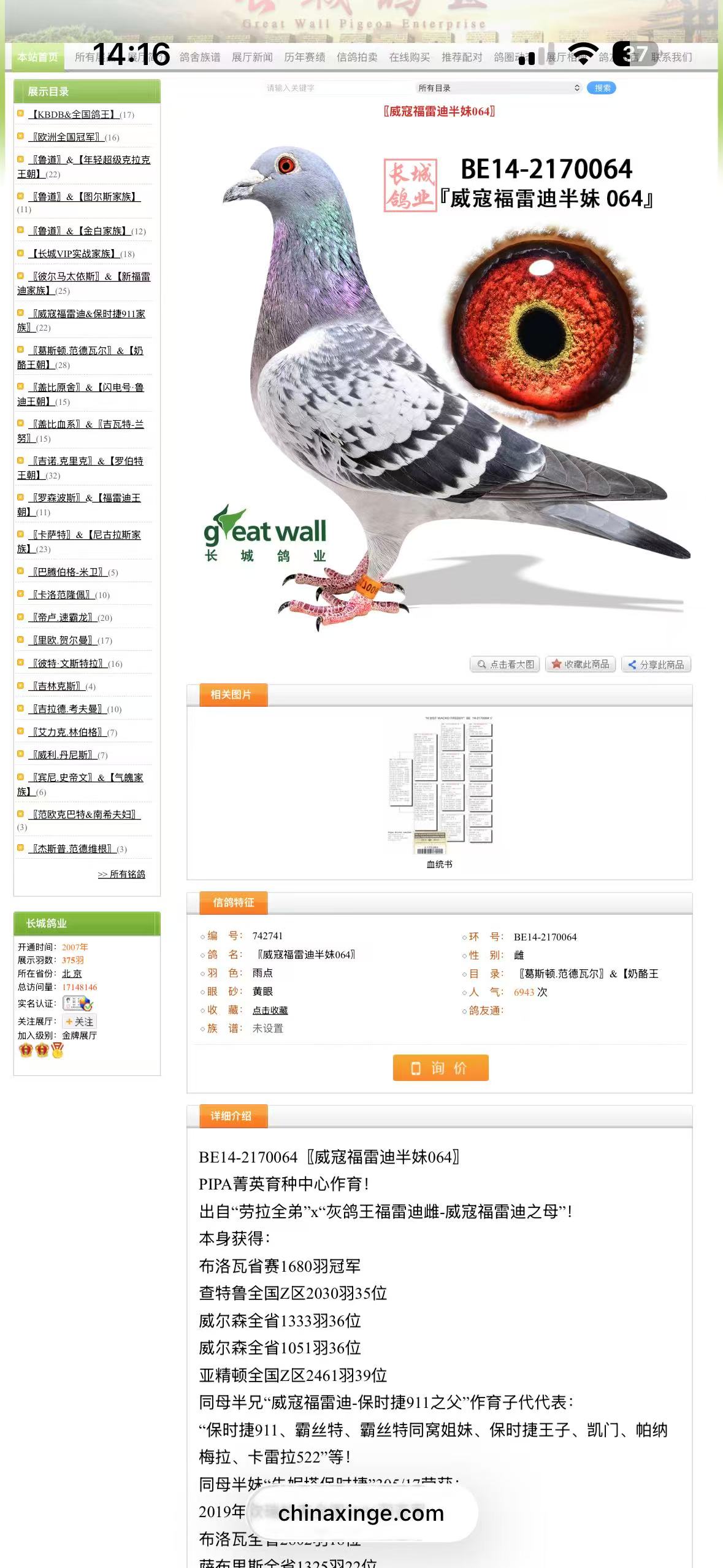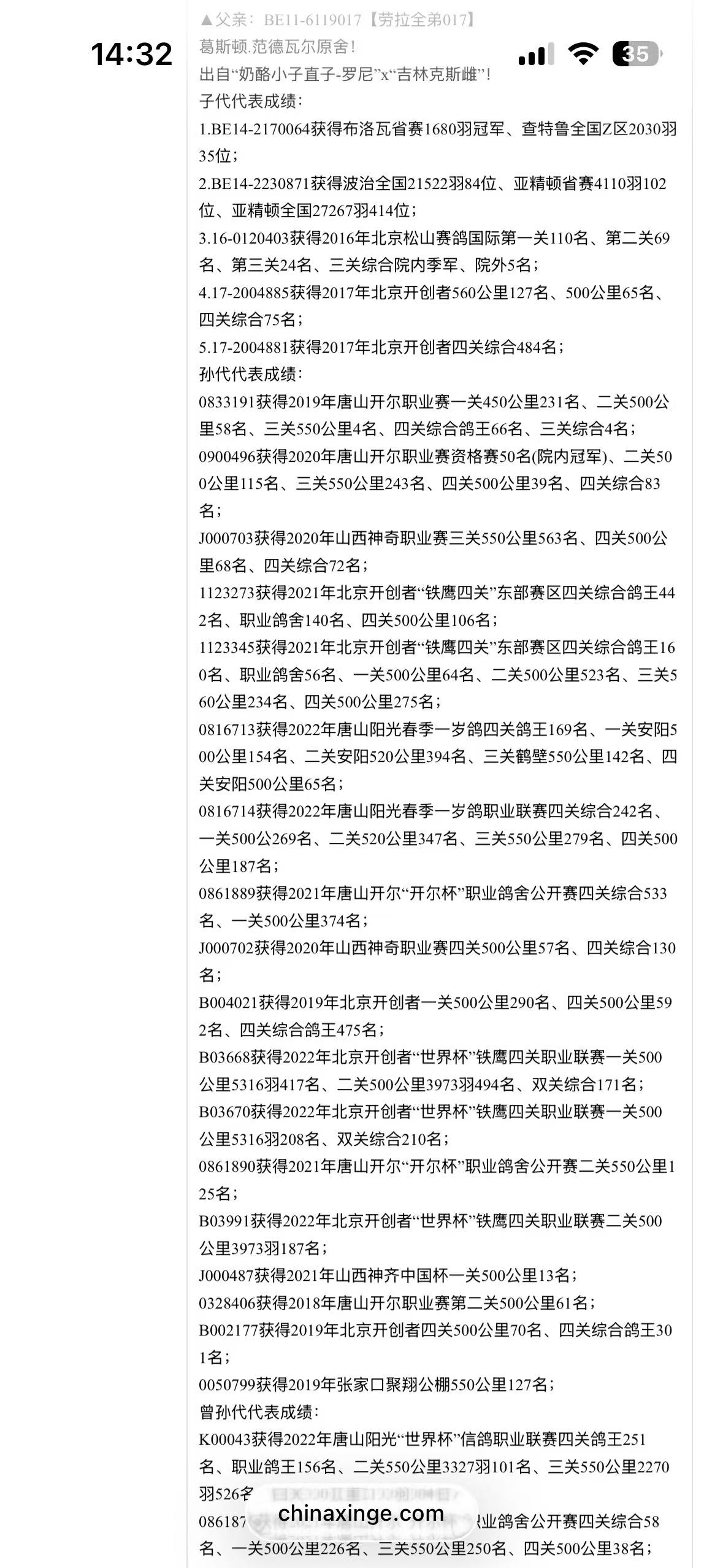 此鸽直接后代前十名太多羽,很多鸽友在长城买的此鸽后代超级发挥