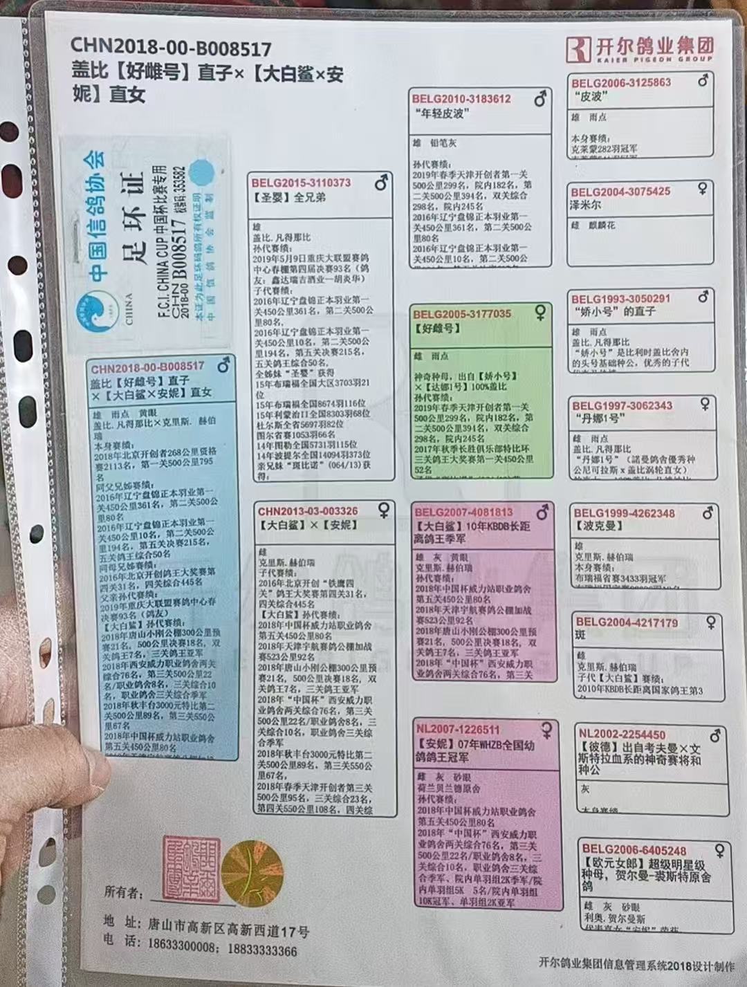 注;此鸽只有血统书照片、原版不知道让我放哪了,介意勿拍