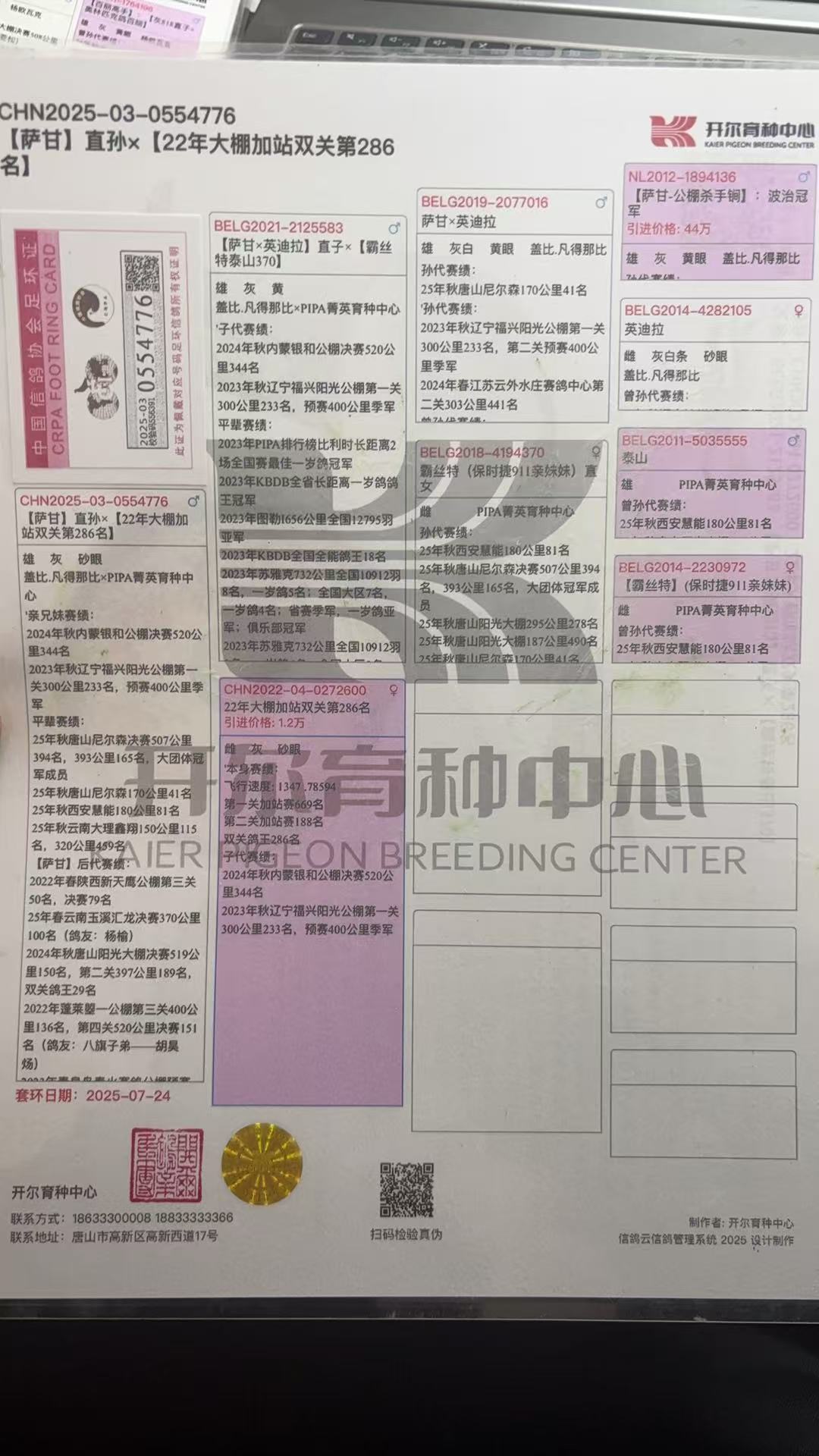 | 1659208 | 忠胜鸽王9名平辈、开尔做出、超级 | ¥1000元 | 4次 |