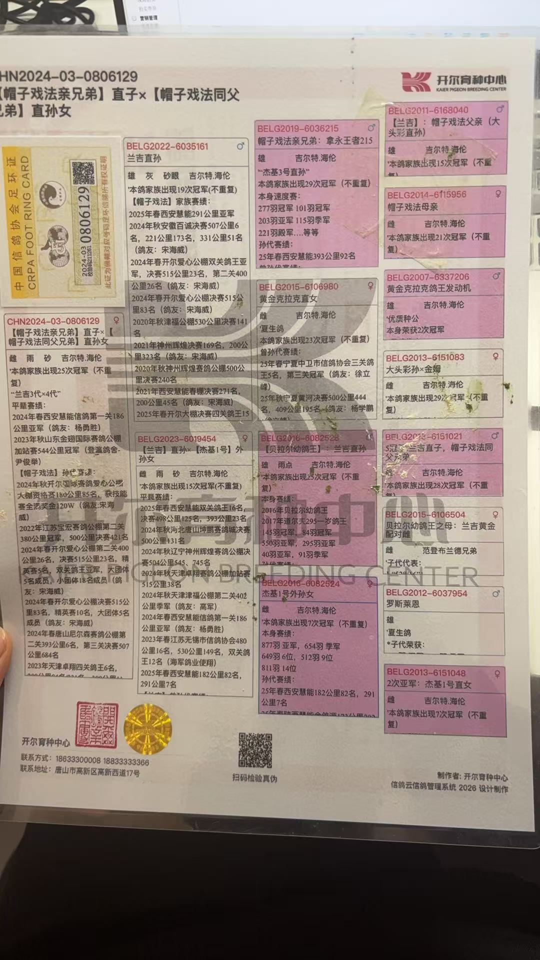 | 1659208 | 忠胜鸽王9名平辈、开尔做出、超级 | ¥1000元 | 4次 |