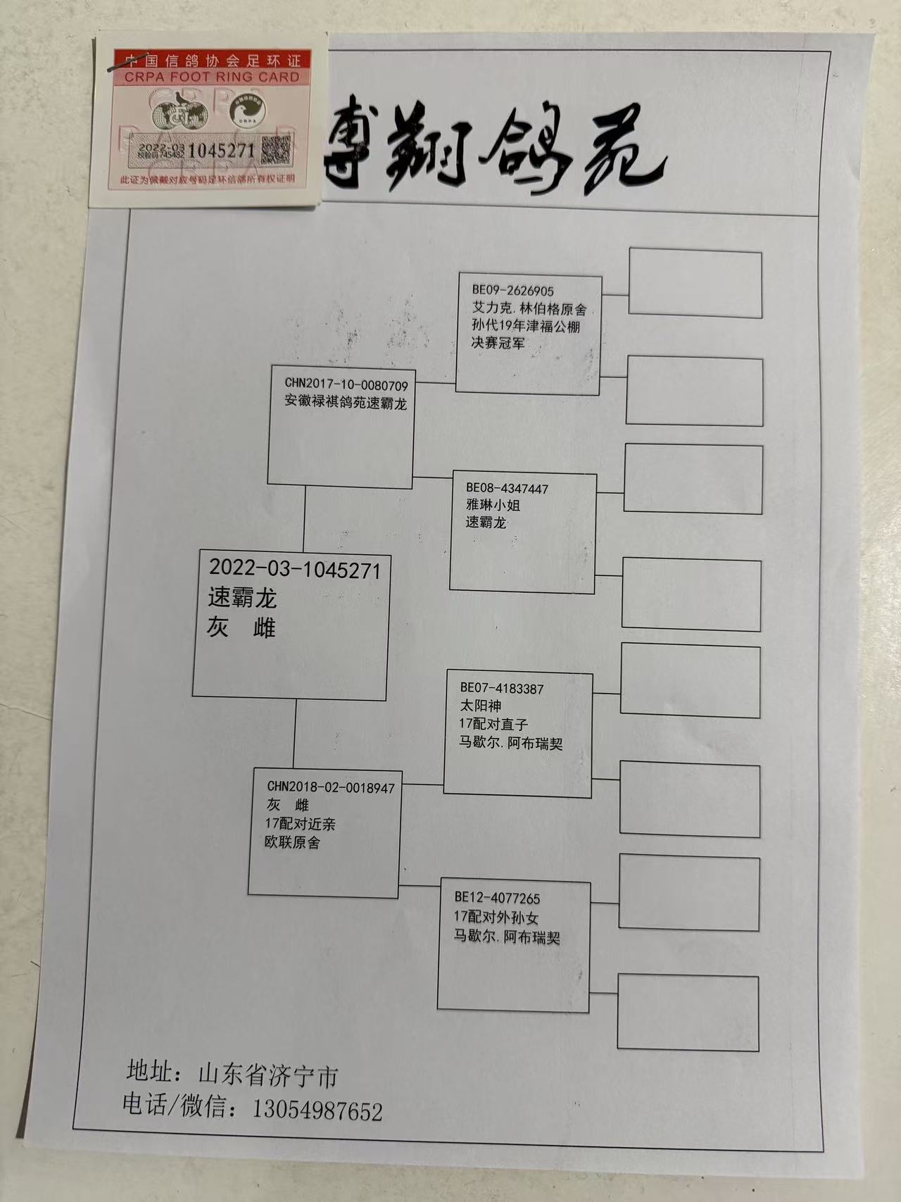 1659280 利奥003近亲曾孙女,子代开尔400公里276名,决赛664 ¥1000元 0次