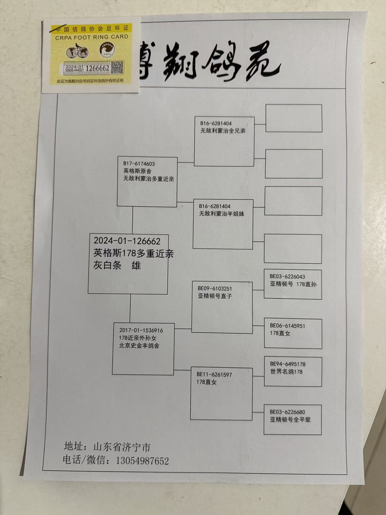 英格斯178近亲雄鸽662