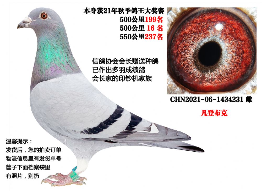 - 当前查看拍卖鸽:21年秋季多关赛鸽王,协会会长赠送种鸽(