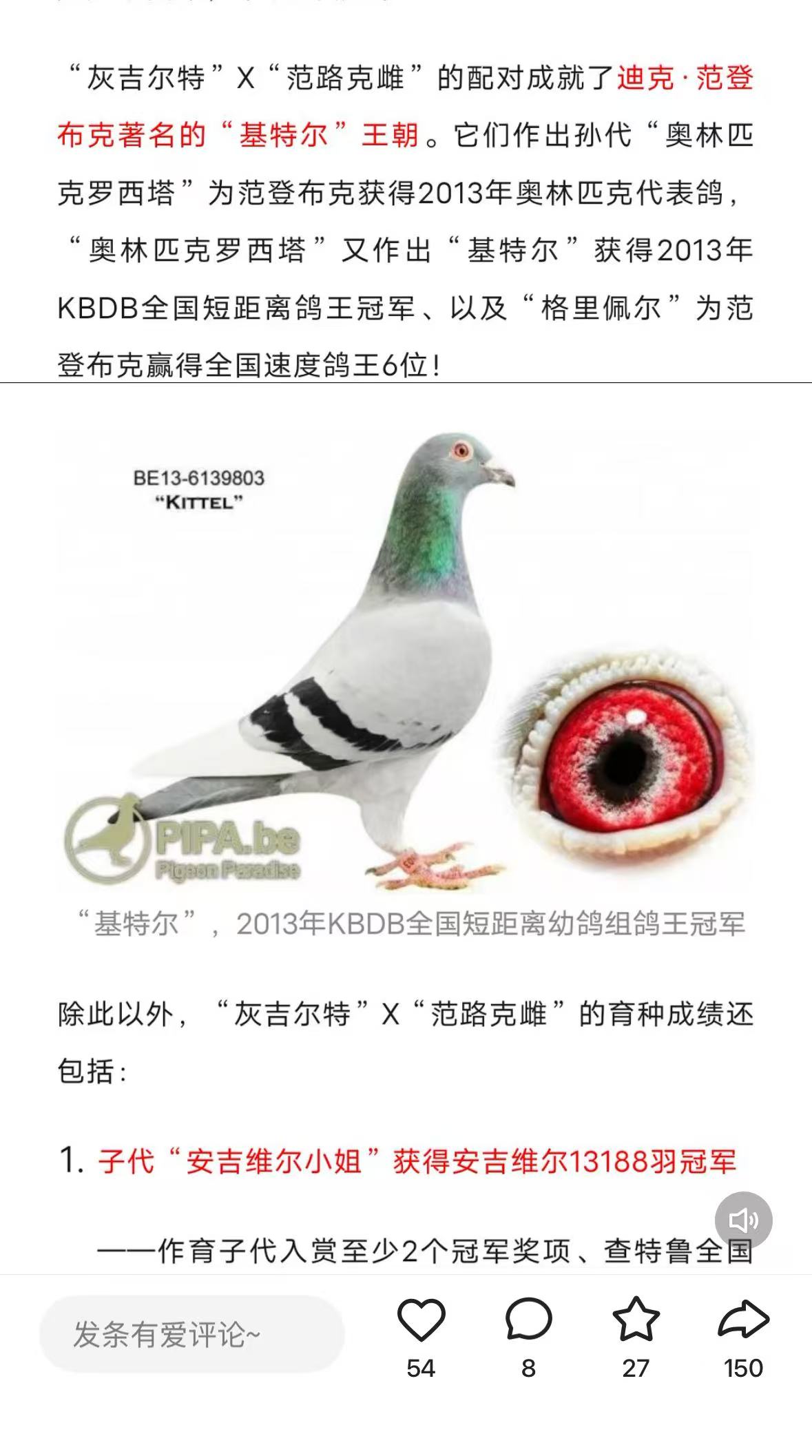 此鸽两羽平辈在荷兰爱亚卡普现在是重点种鸽