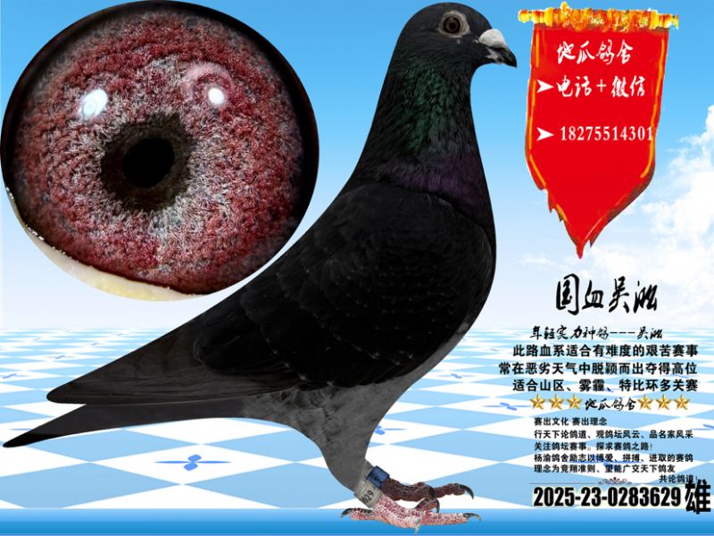 - 当前查看拍卖鸽:国血吴淞汪种老桃花,中小体雄,非常聪明,