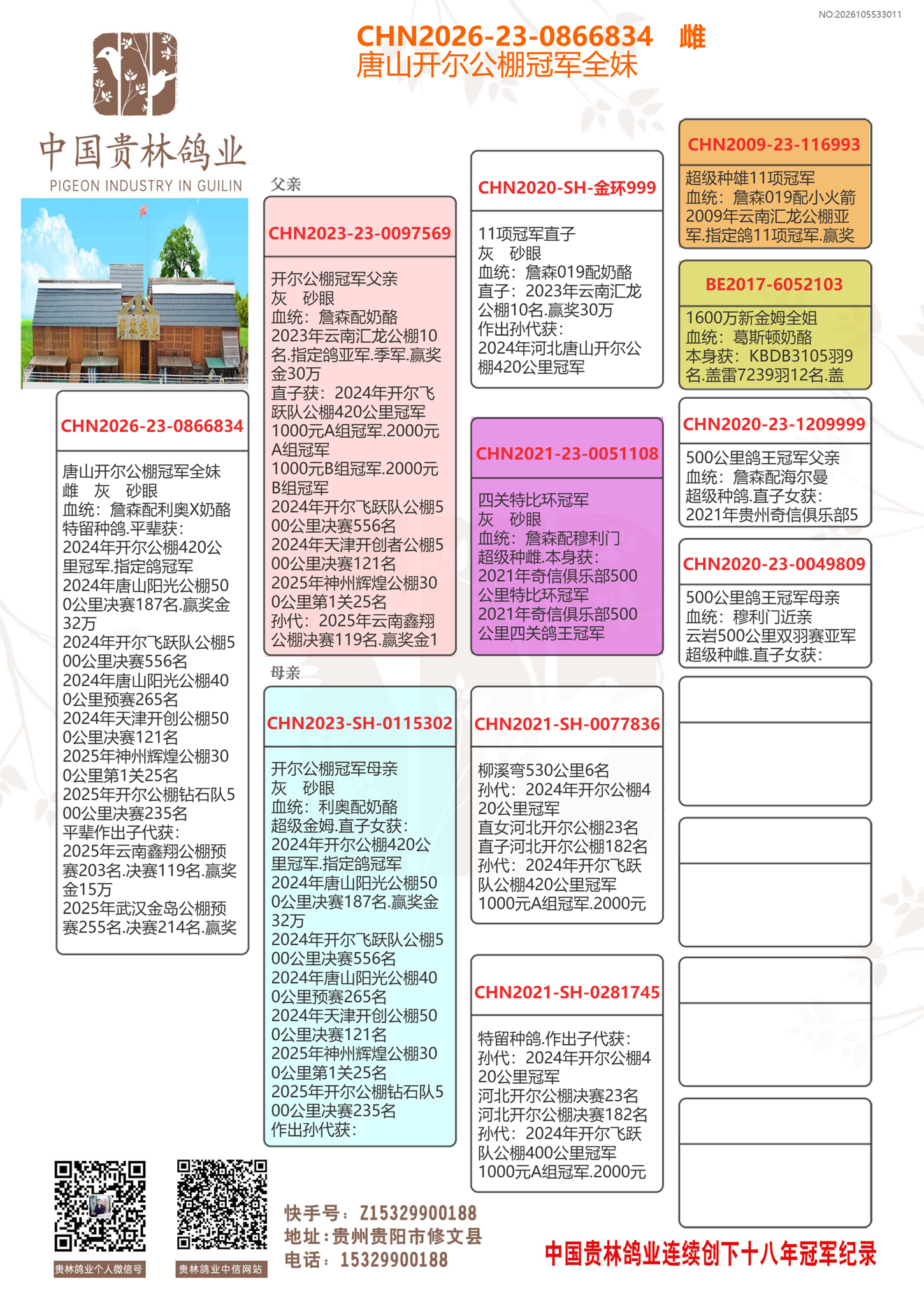 ★贵林鸽业支援全国鸽友从2010年至2025年连续创下十五年冠军.亚军.季军前十名高位好成绩.感谢大家鸽友一直支持!