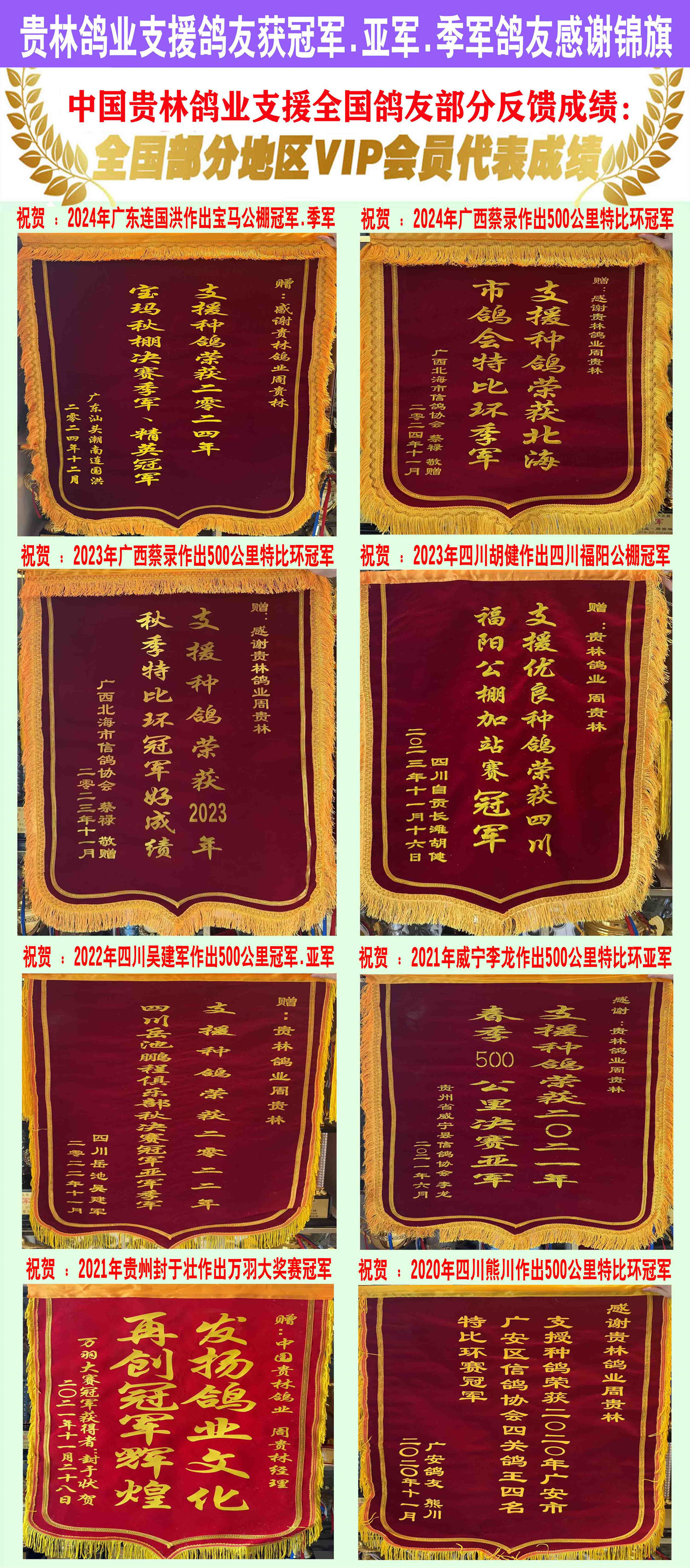 ★贵林鸽业支援全国鸽友从2010年至2025年连续创下十五年冠军.亚军.季军前十名高位好成绩.感谢大家鸽友一直支持!