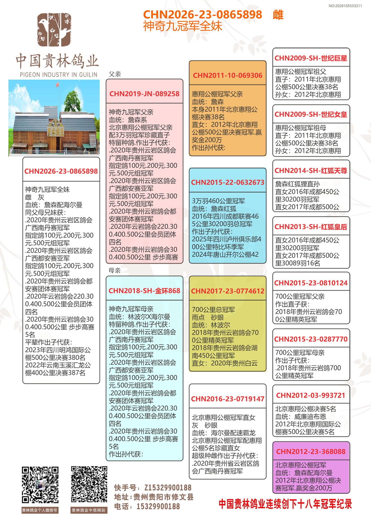 神奇九冠军全妹.北京惠翔公棚冠军弟配700公里冠军直女