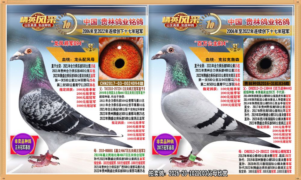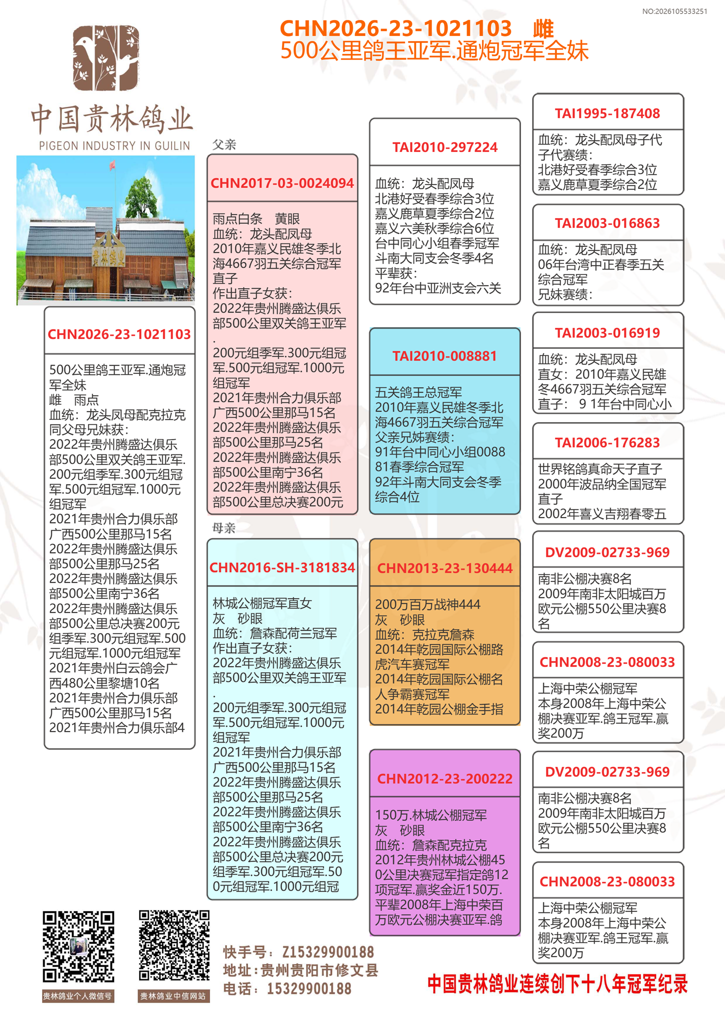 ★贵林鸽业2006年至2024年连续创下十八年冠军记录!200公里冠军.300公里冠军.400公里冠军.500公里冠军.公棚冠军.特比环冠军.三关鸽王冠军.四关鸽王冠军.大小冠军无一缺席!