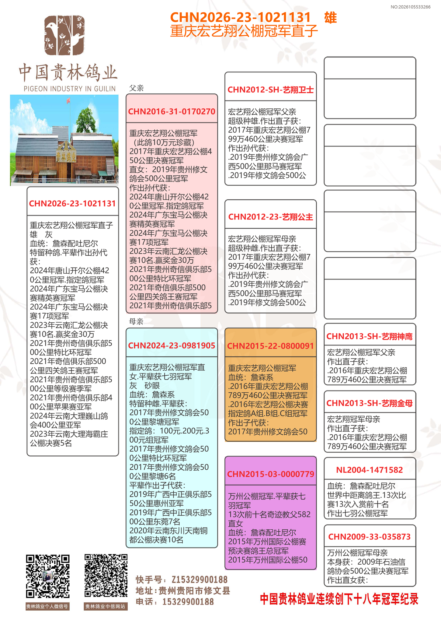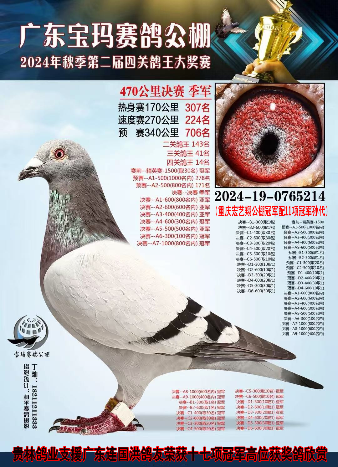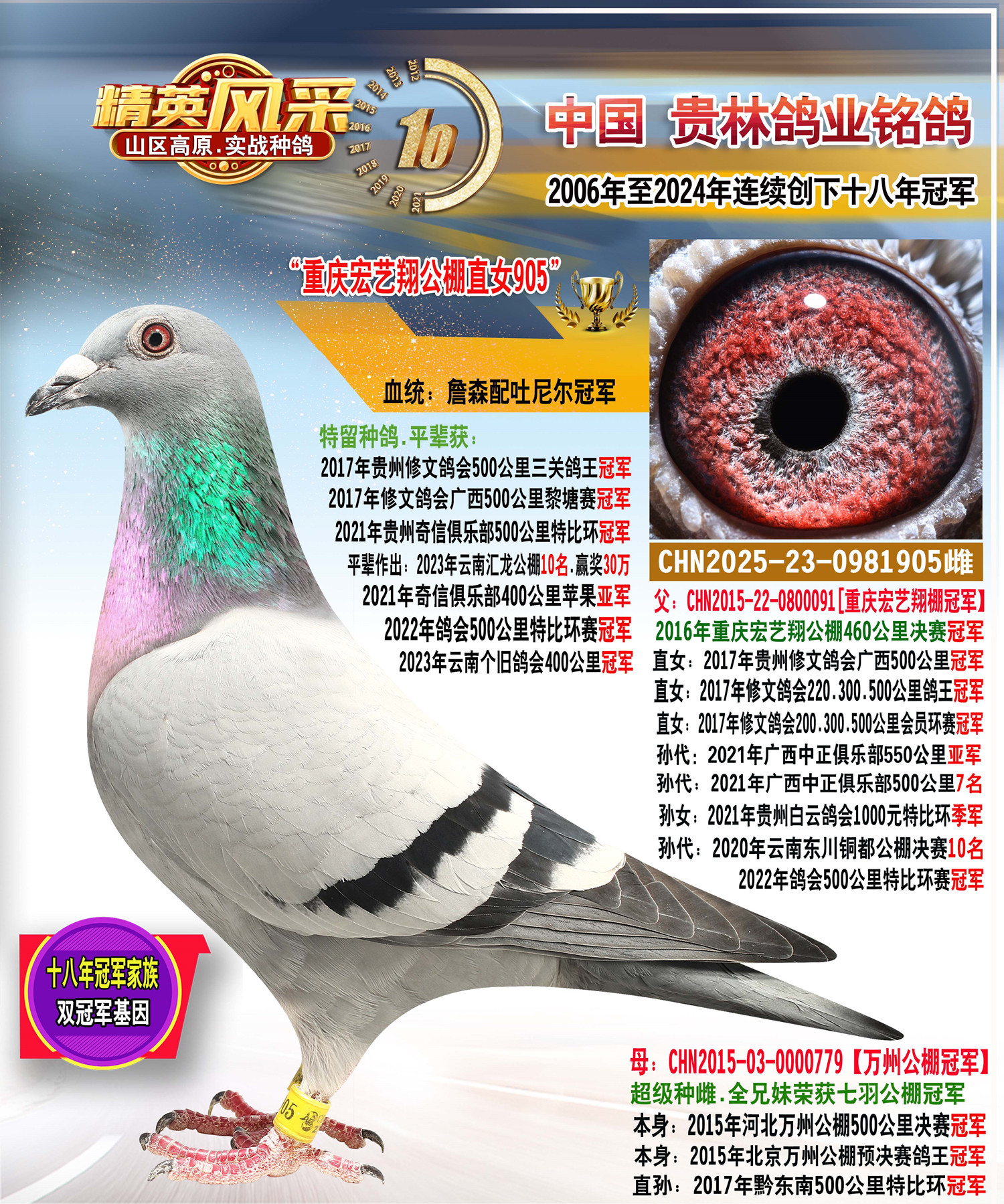 重庆宏艺翔公棚冠军直子.此鸽集三羽公棚冠军基因一体