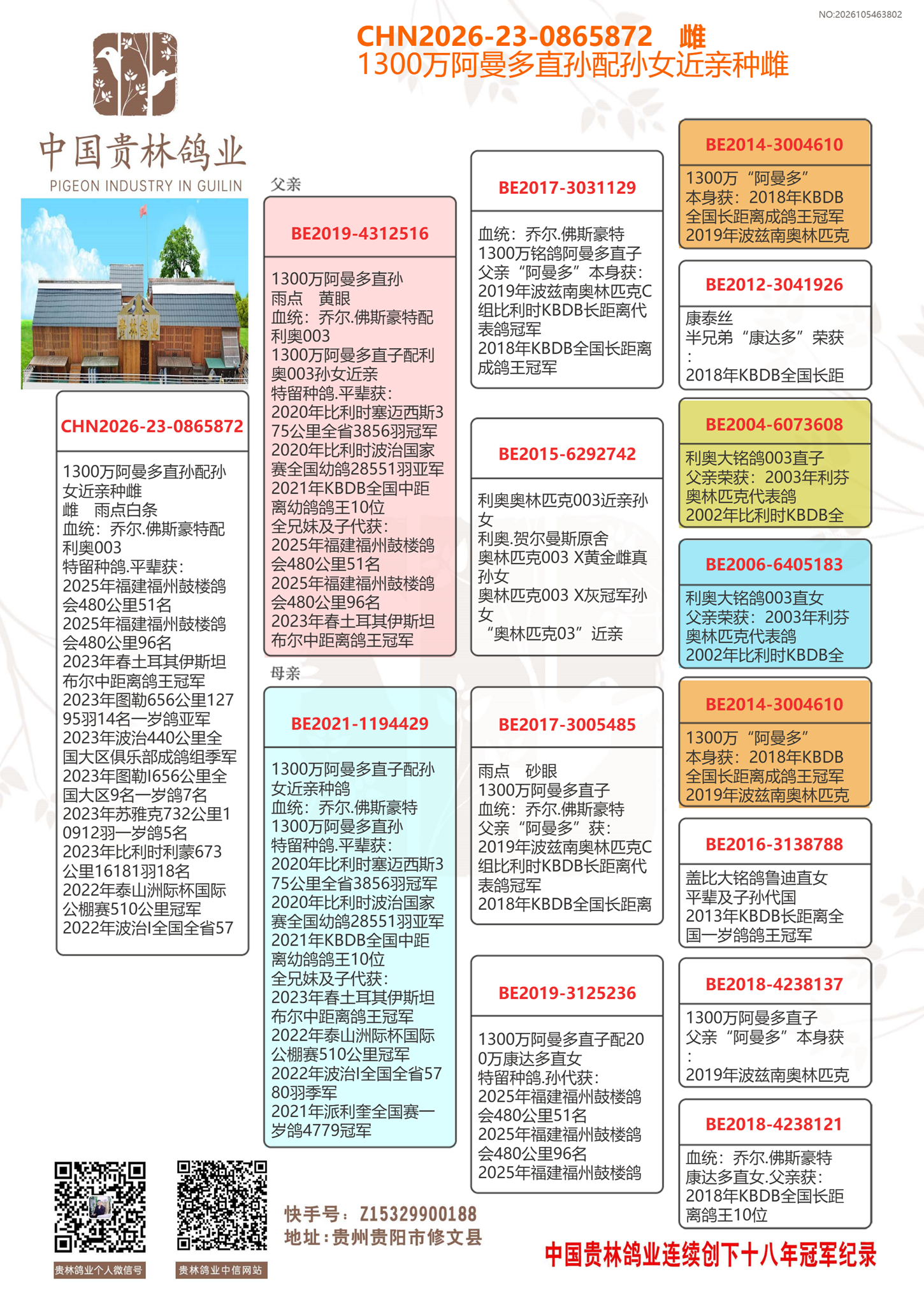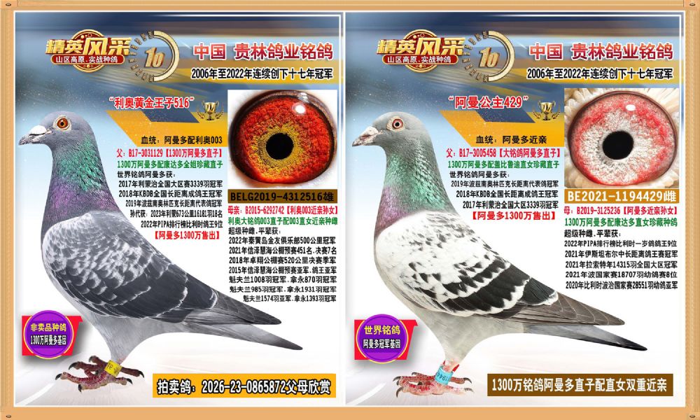 | 1659658 | 黄金配对直子.平辈获400公里冠军.500公里冠军 | ¥600元 | 0次 |