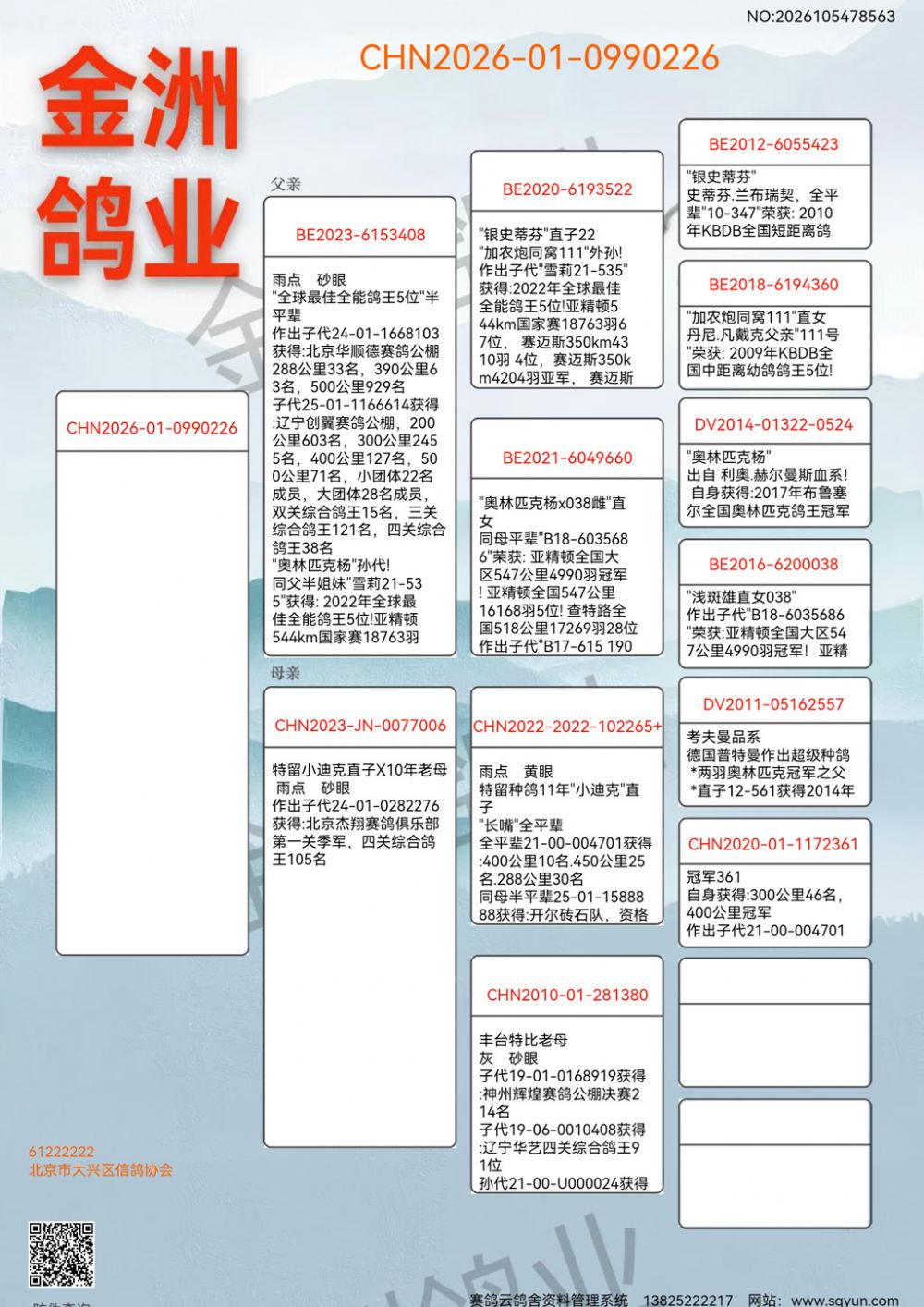 - 当前查看拍卖鸽:北京金洲鸽业幼鸽0990226