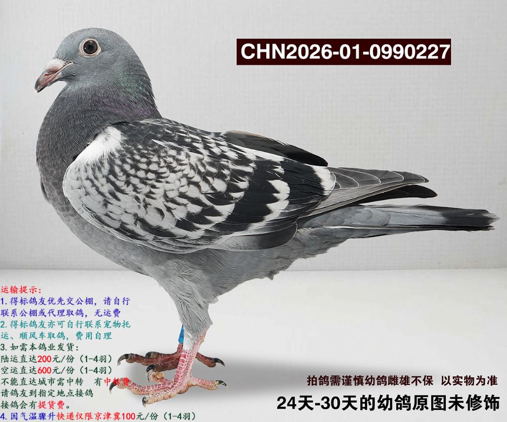 所有拍卖赛鸽均为幼鸽,如经过长途运输、变换鸽舍及周边环境;如出现健康问题:收到鸽子请录视频为证,收到鸽子3日内联系,逾期不做保证;成年后做育问题,我们不做保证。