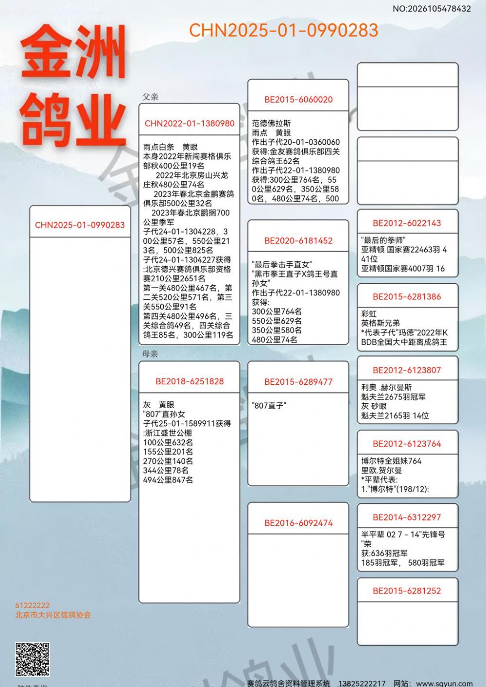 | 1659809 | 北京金洲鸽业幼鸽0990303 | ¥600元 | 1次 |