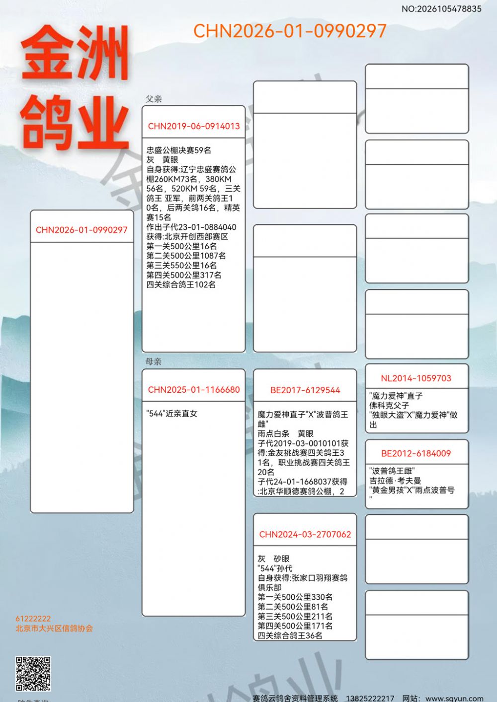 - 当前查看拍卖鸽:北京金洲鸽业幼鸽0990297