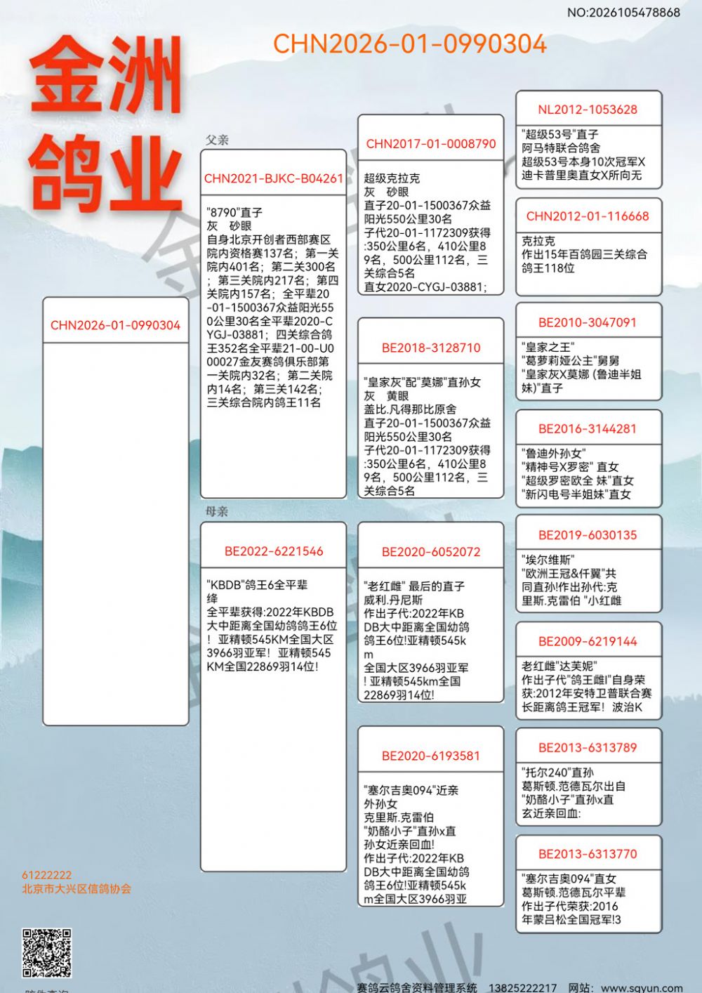 - 当前查看拍卖鸽:北京金洲鸽业幼鸽0990304