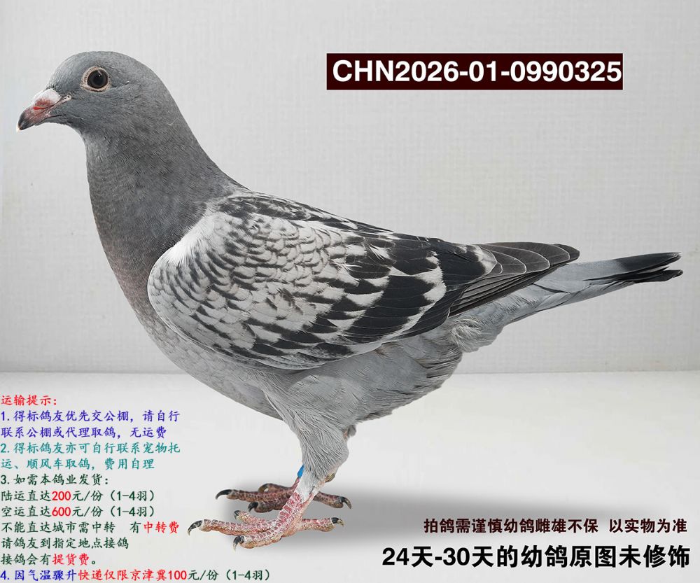 所有拍卖赛鸽均为幼鸽,如经过长途运输、变换鸽舍及周边环境;如出现健康问题:收到鸽子请录视频为证,收到鸽子3日内联系,逾期不做保证;成年后做育问题,我们不做保证。