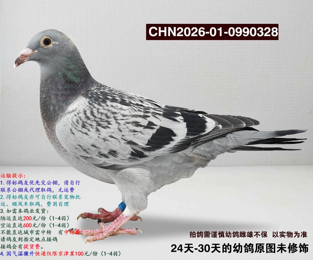 所有拍卖赛鸽均为幼鸽,如经过长途运输、变换鸽舍及周边环境;如出现健康问题:收到鸽子请录视频为证,收到鸽子3日内联系,逾期不做保证;成年后做育问题,我们不做保证。